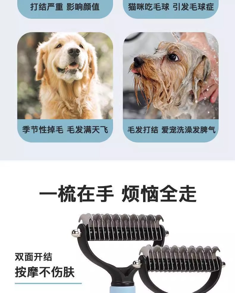 국경 간 애완 동물 빗, 개 벼룩 빗, 고양이 벼룩 제거 빗, 플라스틱 고밀도 치아 특수 빗, 강철 바늘 빗, 털 제거 빗스토어 가기