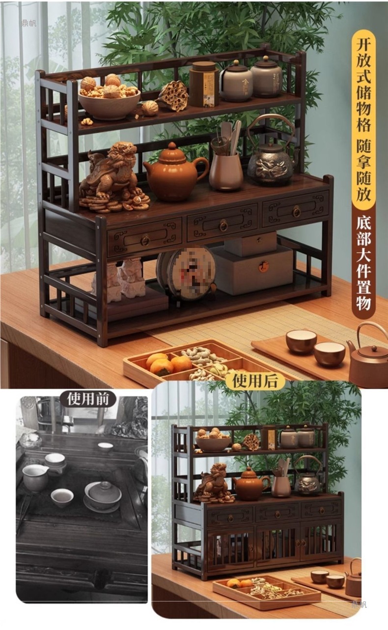 Bogu 랙 새로운 중국 스타일 차 디스플레이 랙 차 세트 랙 데스크탑 차 컵 디스플레이 랙 보라색 점토 냄비 디스플레이 랙스토어 가기