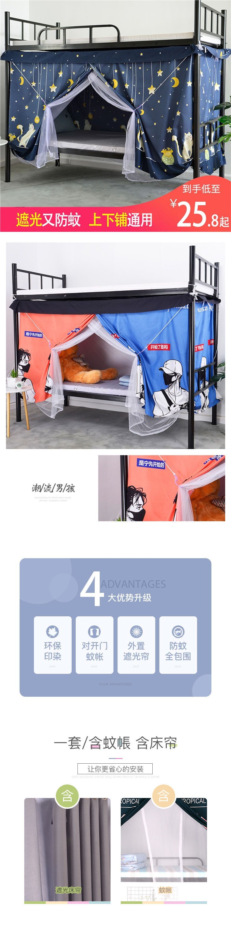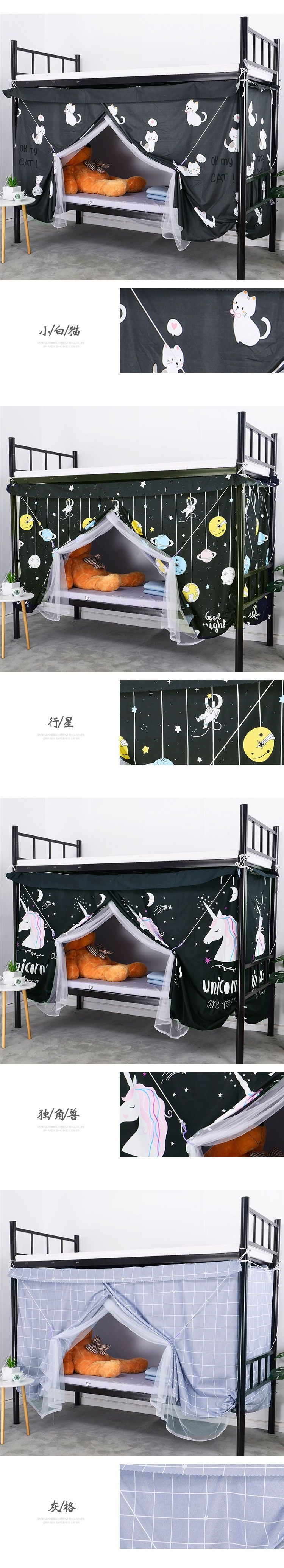 학생 기숙사 침대 커튼 모기장 일체형 기숙사 상층 및 하층 남녀 반차광 천 심플한 기능 스타일 침대 커튼스토어 가기