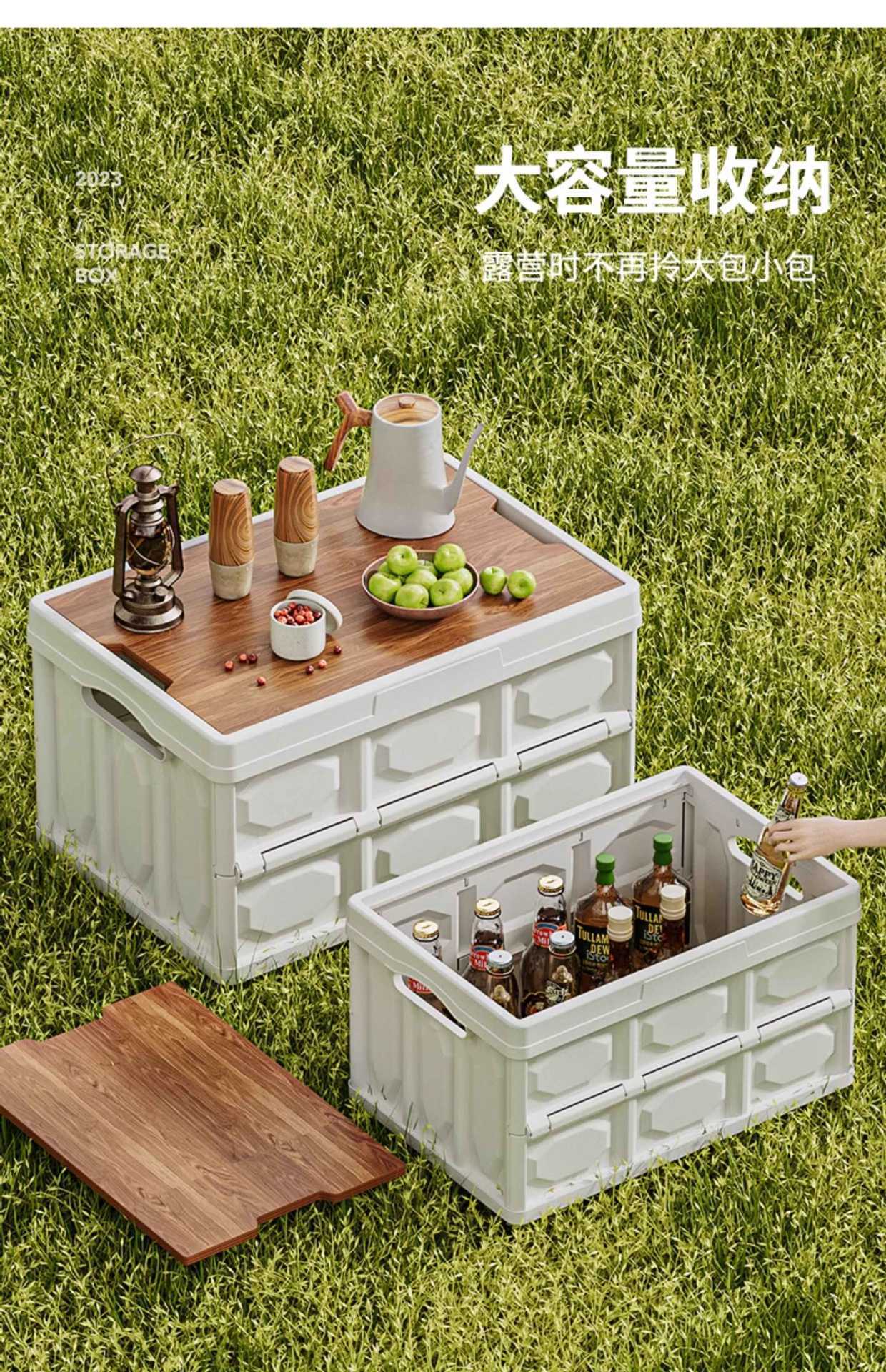 트렁크 보관함 자동차 홈 박스 캠핑 피크닉 보관함 자동차 접이식 야외 방수 나무 커버