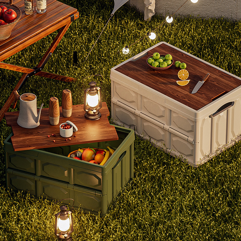 트렁크 보관함 자동차 홈 박스 캠핑 피크닉 보관함 자동차 접이식 야외 방수 나무 커버스토어 가기