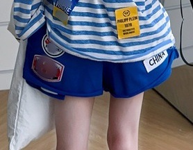 • 빨간색과 파란색 핫 반바지 파란색