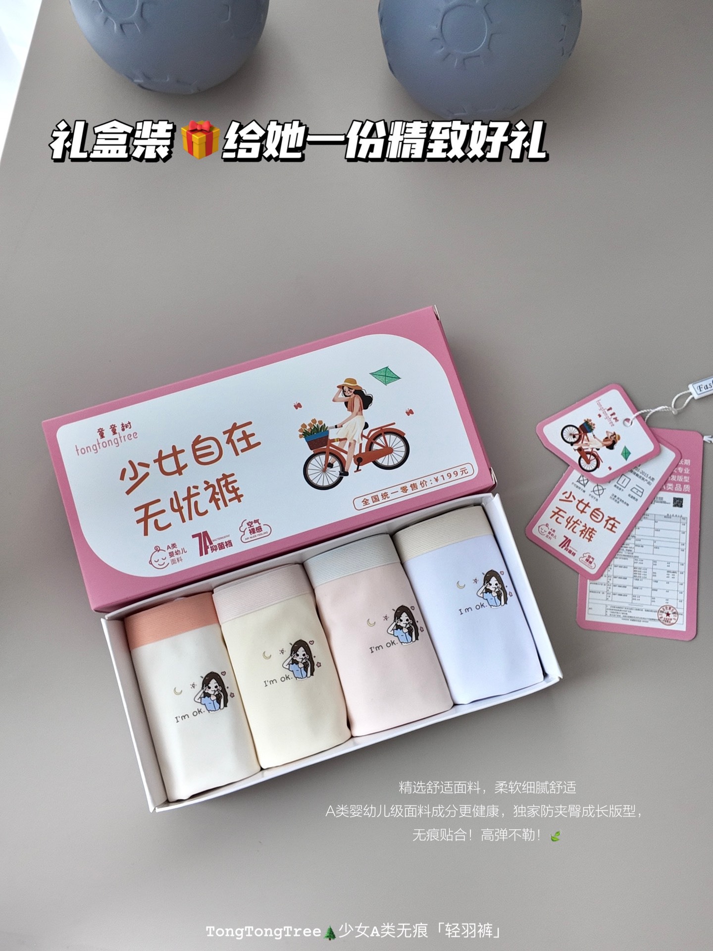 Tongtongshu 독점 성장 기간 A급 라이트 페더 팬츠, 편안하고 흔적이 없는 엉덩이 클램핑 방지 소녀 복서 팬티 드롭 배송