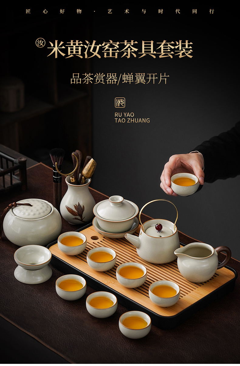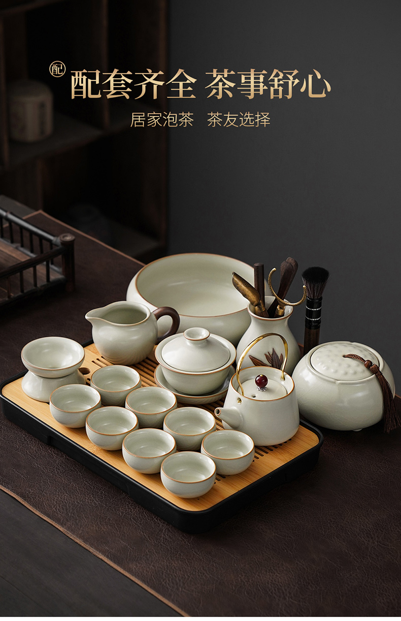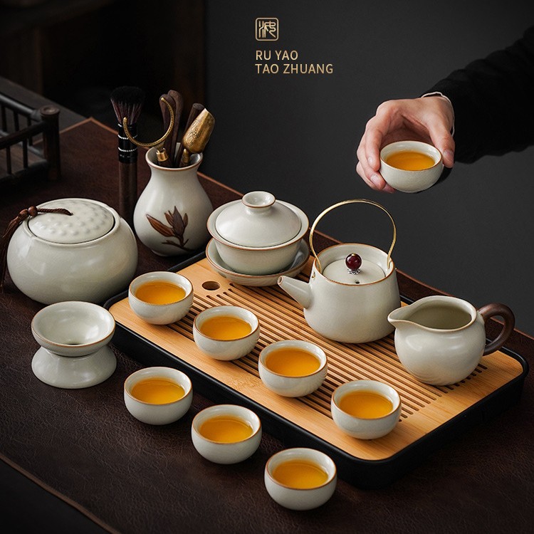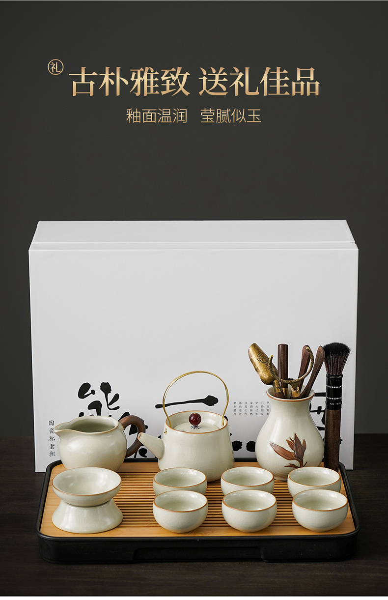 2024 새로운 루오오窯 쿵푸 차 세트 세라믹 주전자 커버 그릇 차 컵 차 트레이 라이트 럭셔리 홈 티스토어 가기