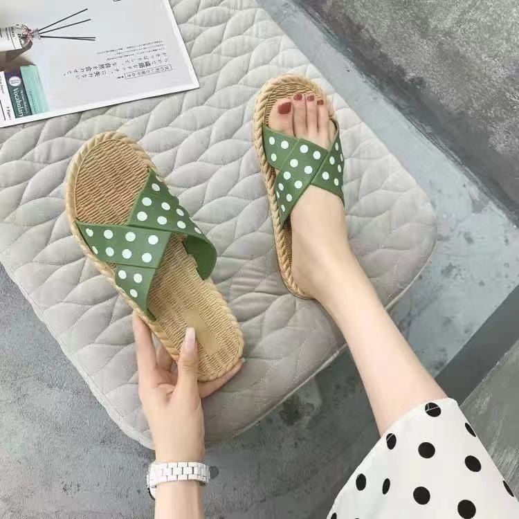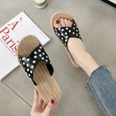 여성용 도트 슬리퍼, 인터넷 연예인 패션, 달콤한 미끄럼 방지 부드러운 바닥, 가정용, 욕실용, 여름용 비치 샌들