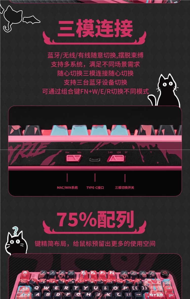 VA4G 기계식 키보드 맞춤형 유선 VK Bluetooth LK 3 모드 752 Rivalki YRIE 디지털 키보드 없음스토어 가기