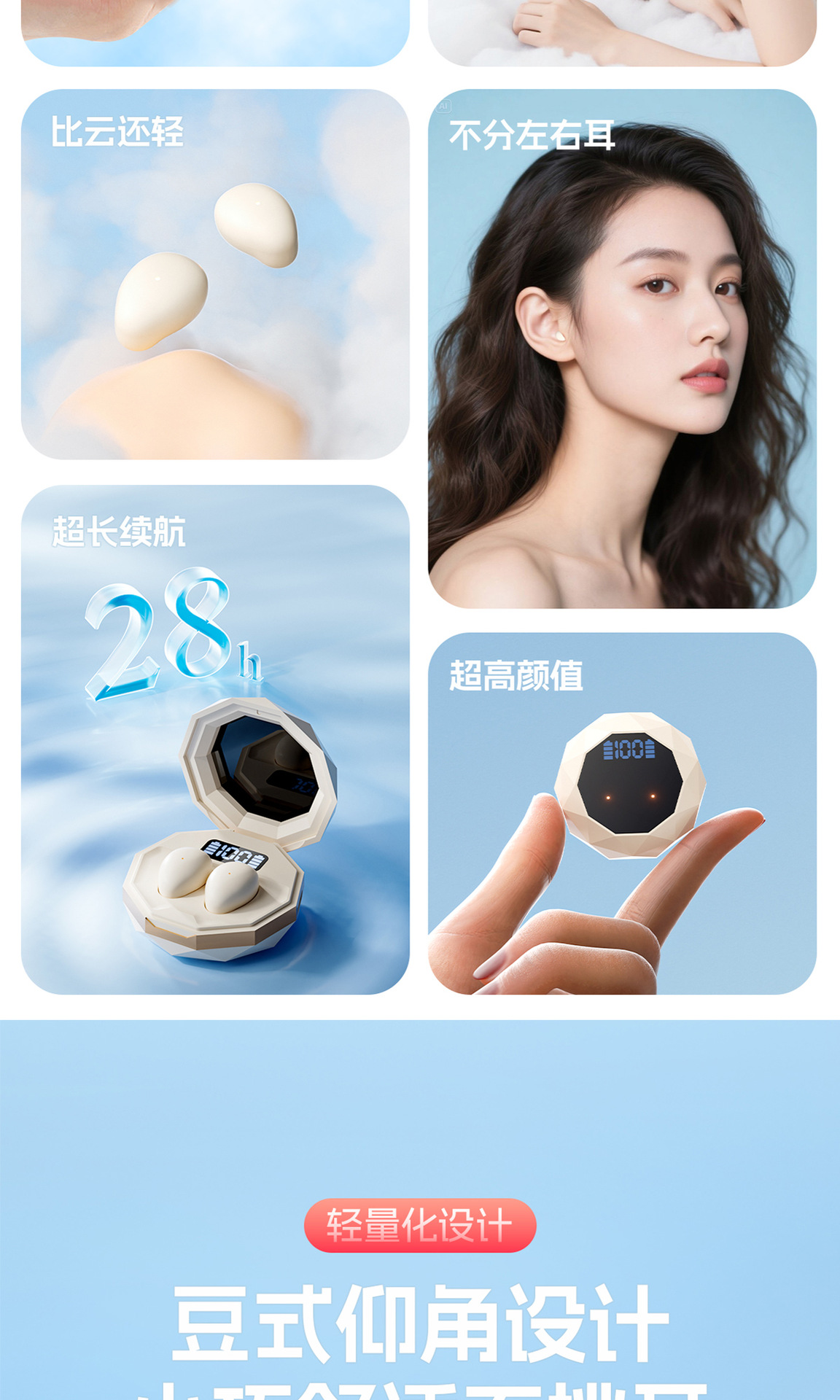 • 피부색 / [최소 4mm 초소형 + 9D 무손실 음질 + 36시간 배터리 + 장시간 착용에도 편안함 + 옆으로 누워도 귀에 압박 없음]
