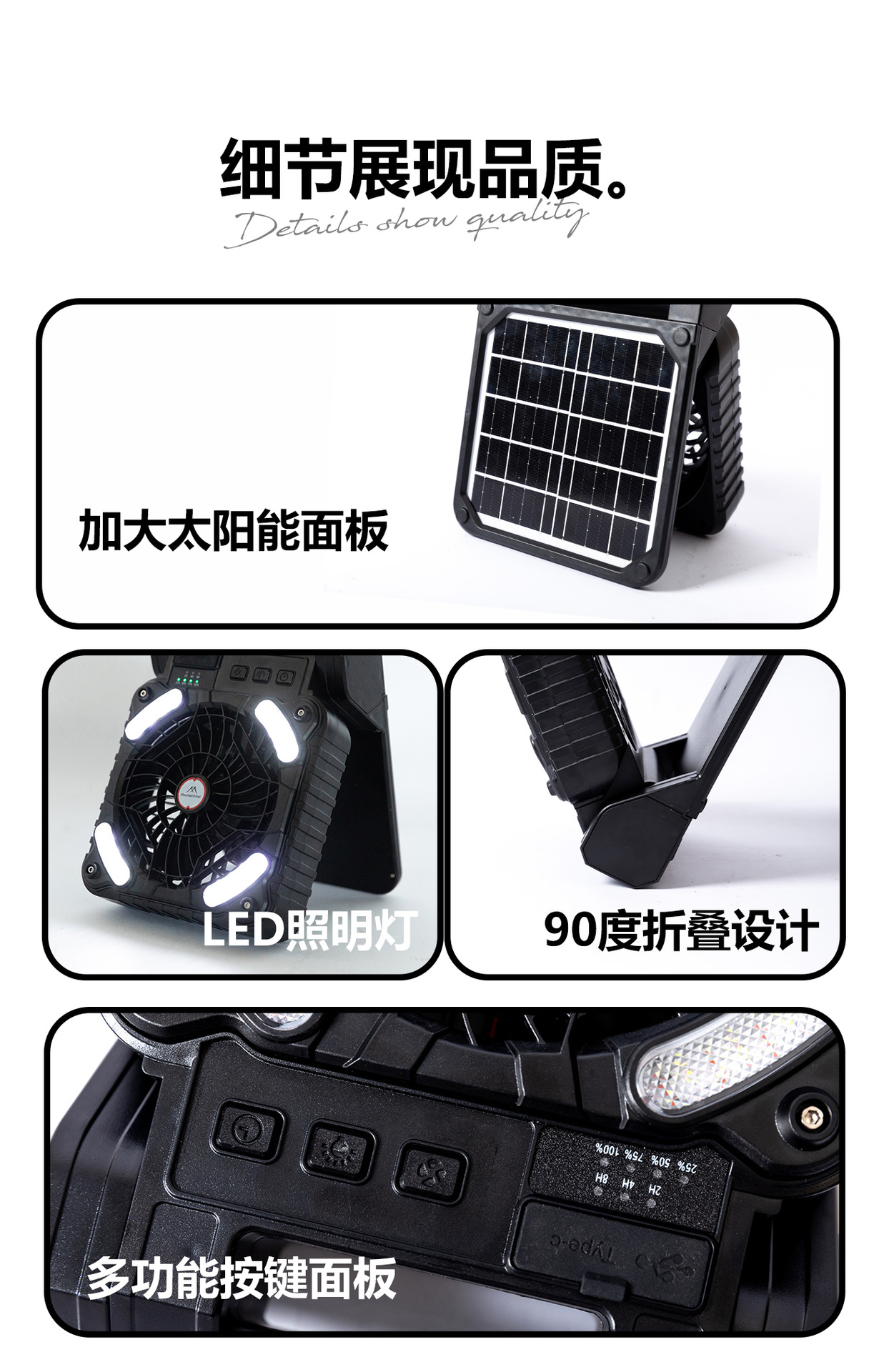 Mountain Guest 태양열 팬 야외 휴대용 대용량 속도 조절 충전 캠핑 낚시 캠핑 텐트 조명
