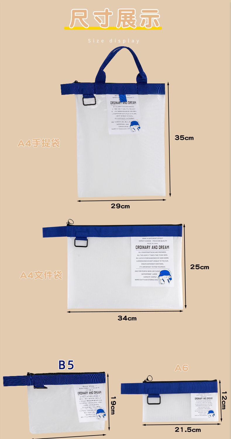 학생용 A4 대용량 투명 핸드백, 두꺼운 지퍼 파일 가방, 간단한 방수 임신 테스트 보관 가방스토어 가기