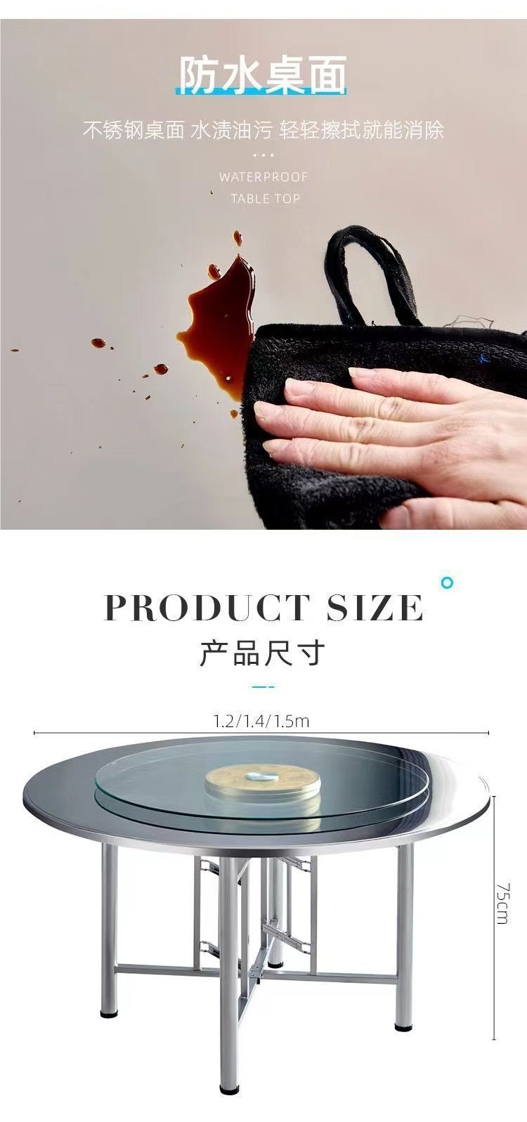 스테인레스 스틸 라운드 탁상 가정용 12인용 원형 식탁 레스토랑 레스토랑 흐르는 물 식탁 호텔 식탁 접이식 테이블