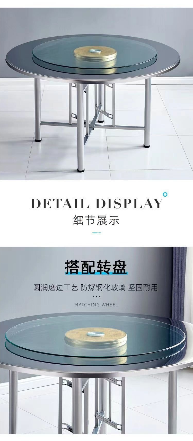 스테인레스 스틸 라운드 탁상 가정용 12인용 원형 식탁 레스토랑 레스토랑 흐르는 물 식탁 호텔 식탁 접이식 테이블스토어 가기