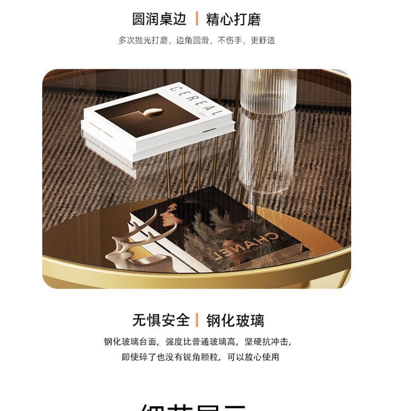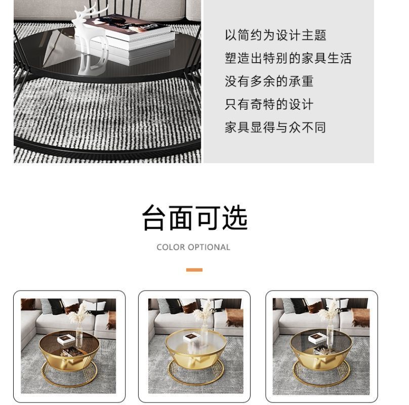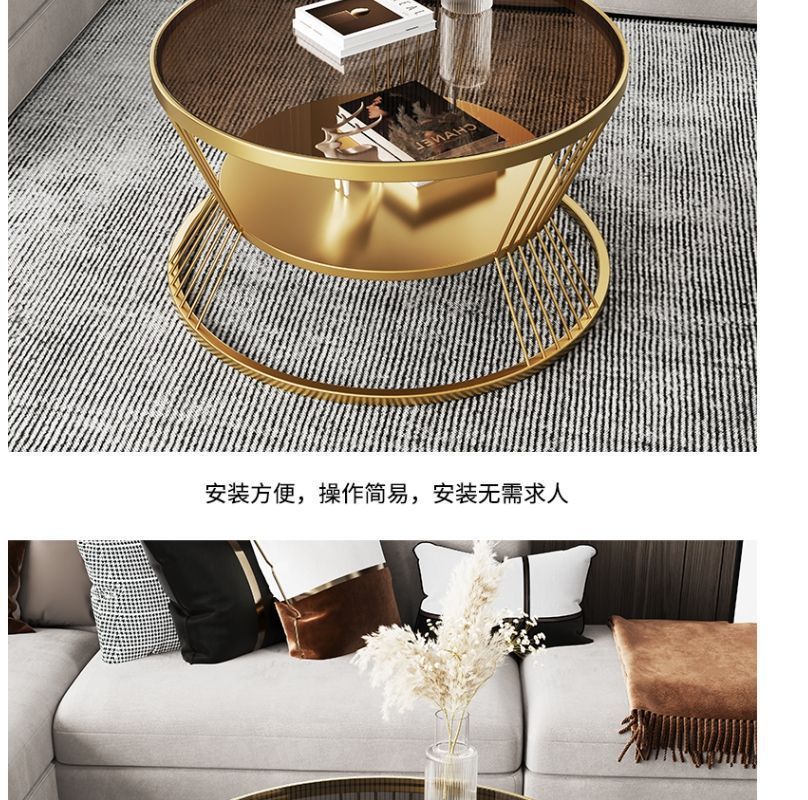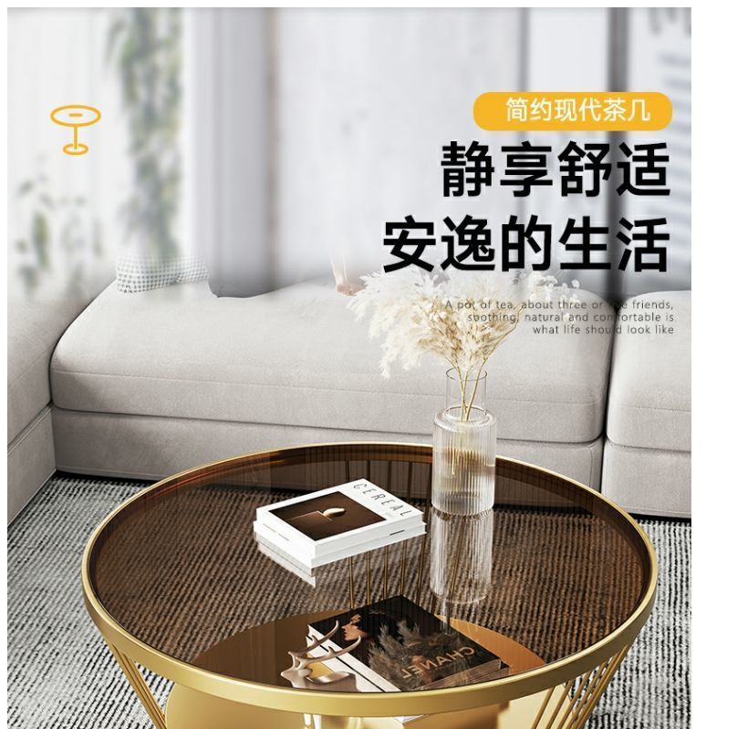 Changhong 강화 유리 커피 테이블 작은 거실 라운드 홈 미니멀리스트 미니 테이블 인터넷 연예인 현대 조명 럭셔리스토어 가기