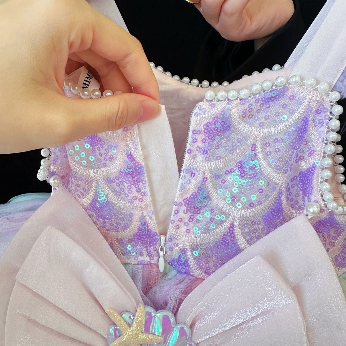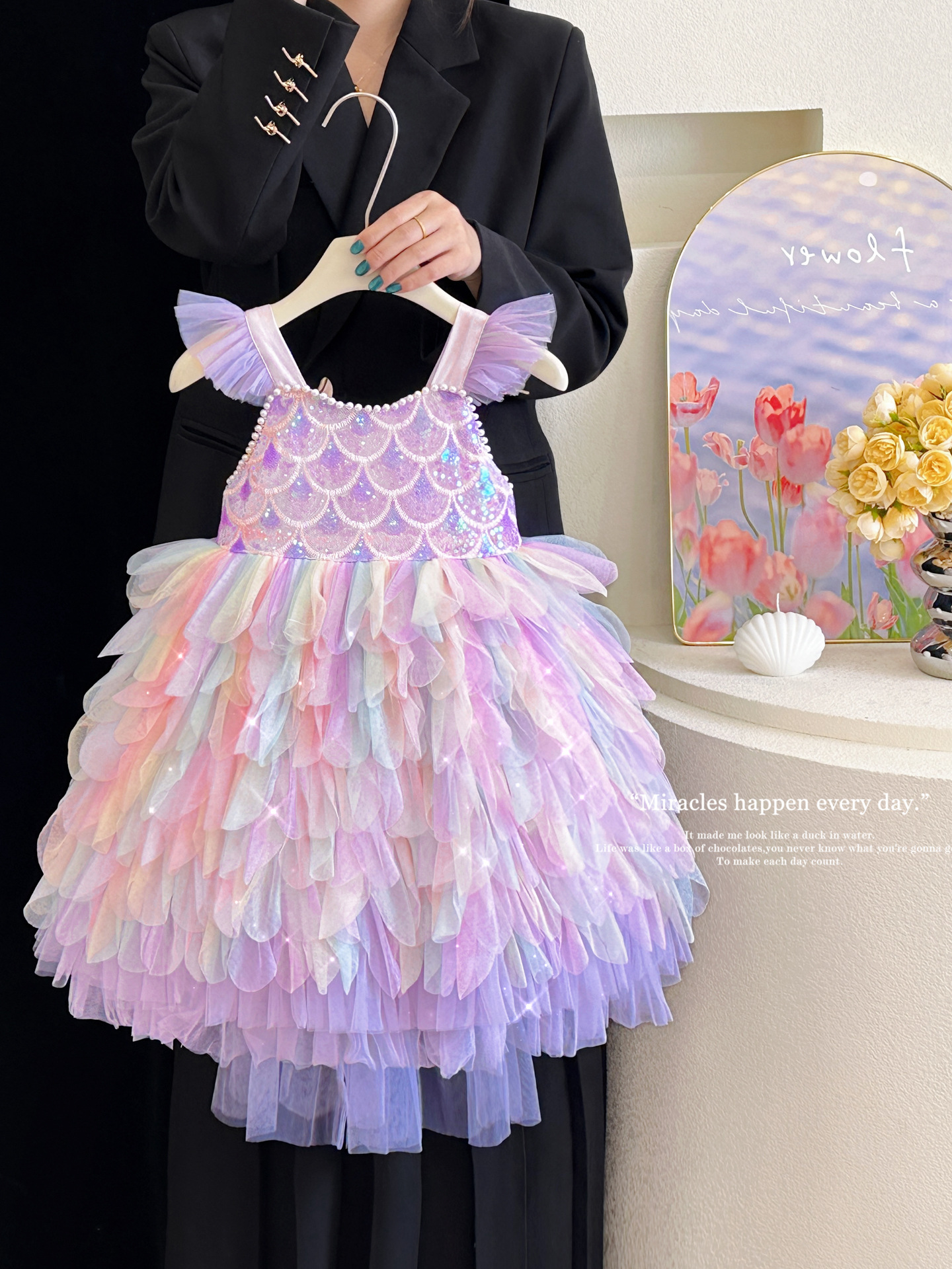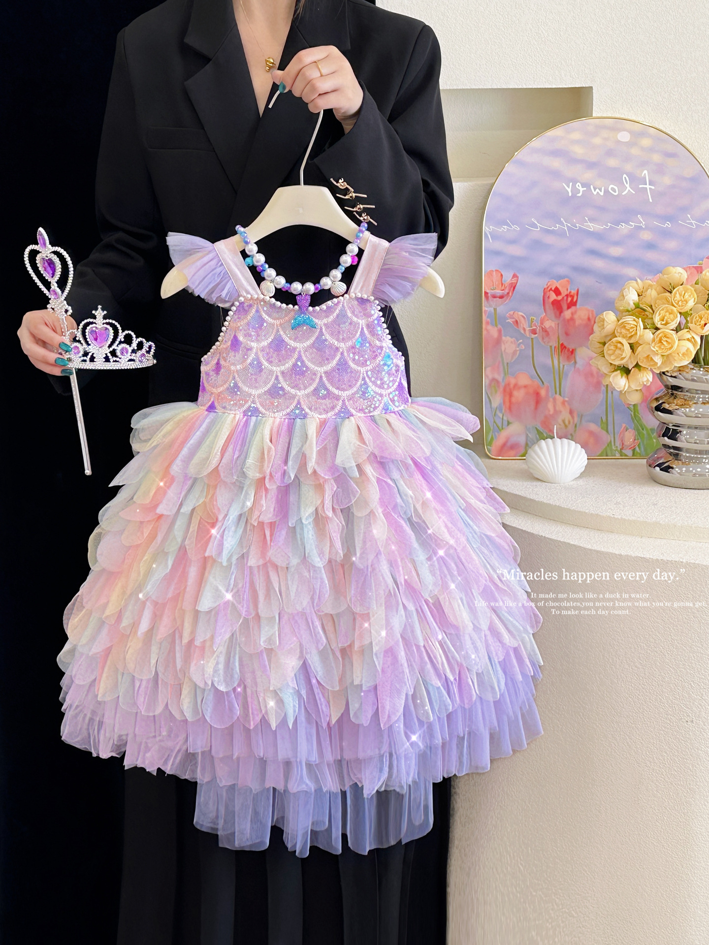 인어 공주 드레스 소녀 여름 드레스 하이 엔드 어린 소녀 서스펜더 생일 드레스 스커트 로리타 퍼프 거즈 스커트스토어 가기
