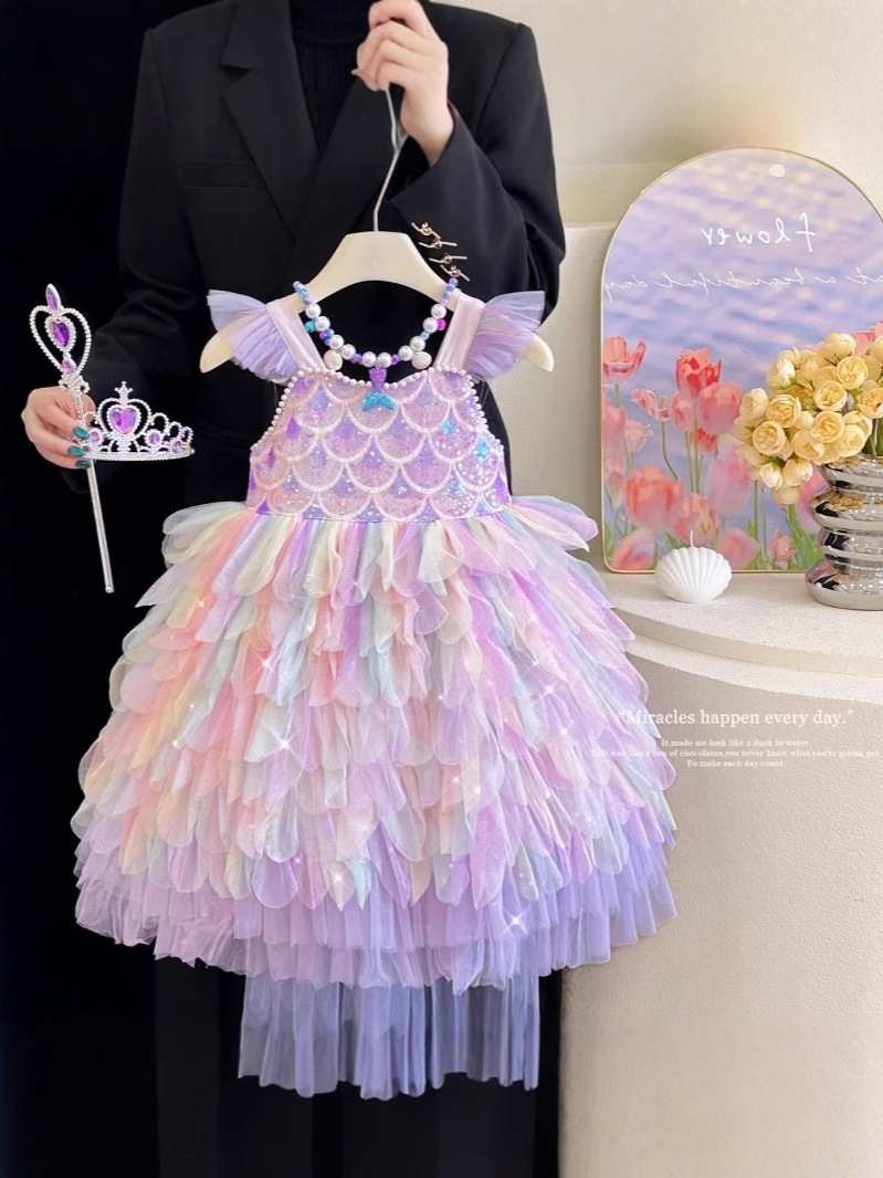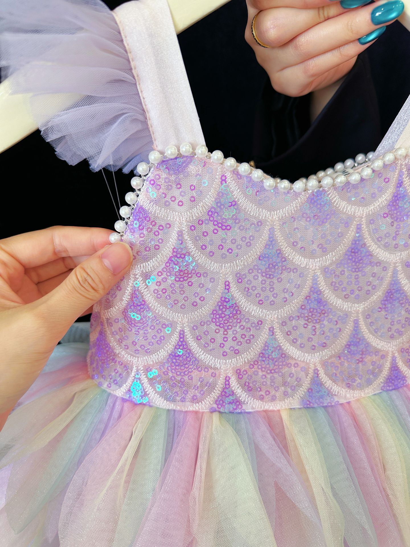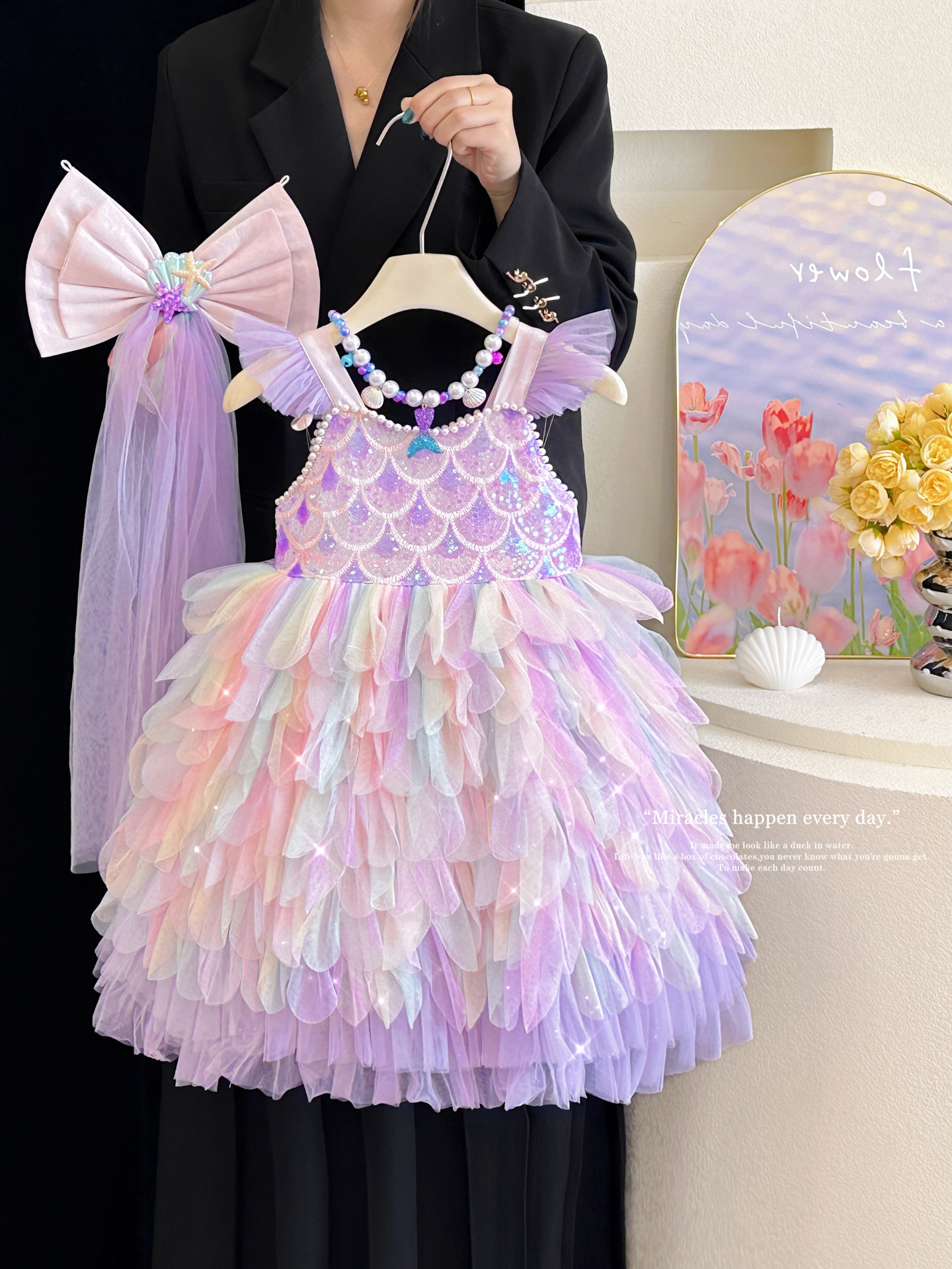인어 공주 드레스 소녀 여름 드레스 하이 엔드 어린 소녀 서스펜더 생일 드레스 스커트 로리타 퍼프 거즈 스커트스토어 가기