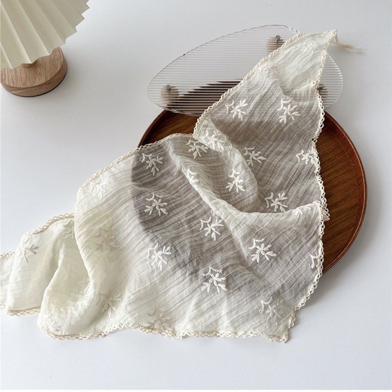 레이스 바오터우 스몰 스퀘어 스카프, 캐주얼 트라이앵글 스카프, 여성용 실크 스카프 모자, 다용도 얇은 면 및 린넨 아동 스카프, 자외선 차단 스카프스토어 가기