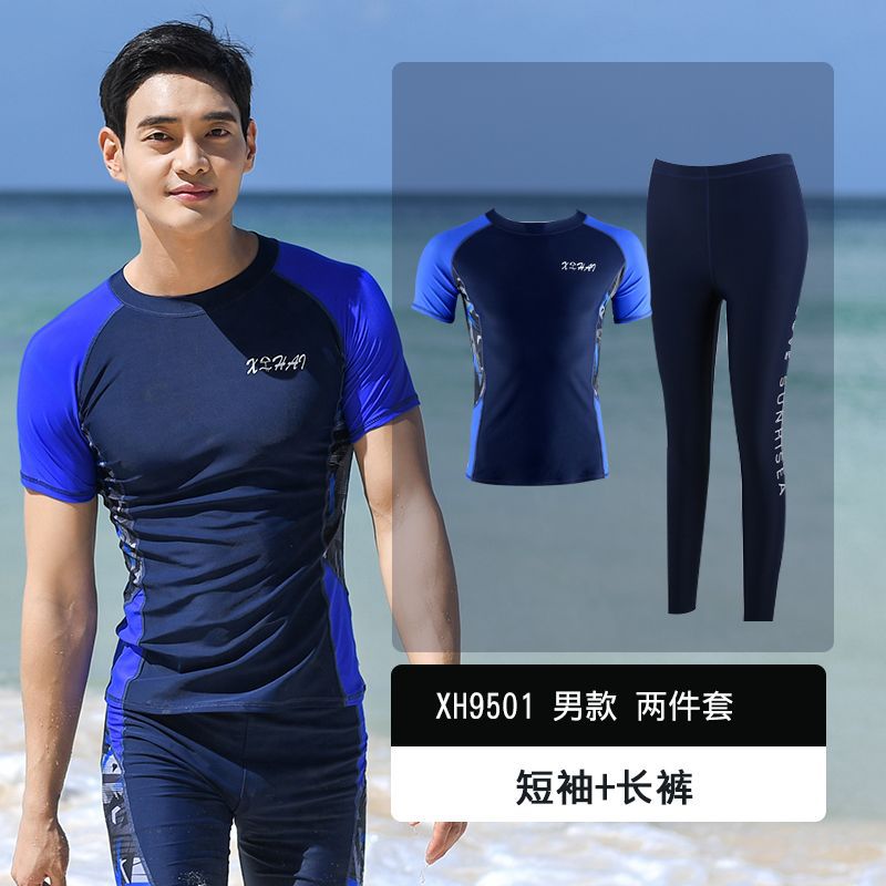 스플릿 수영복 남성용 성인 반팔 탑 긴팔 수영 트렁크 자외선 차단 여름 청소년 남성 수영복 정장