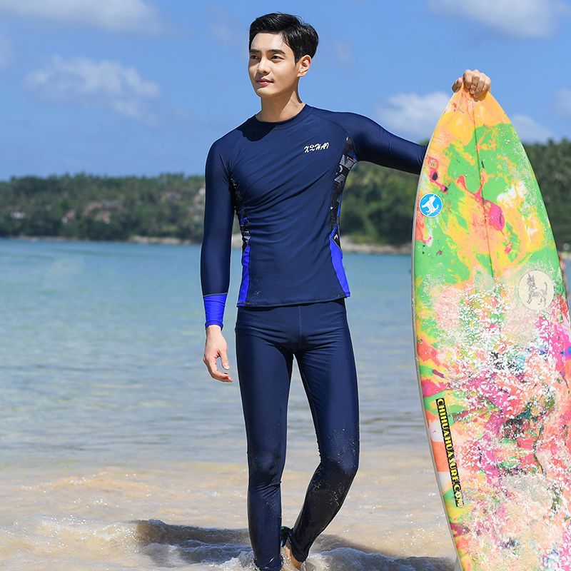 스플릿 수영복 남성용 성인 반팔 탑 긴팔 수영 트렁크 자외선 차단 여름 청소년 남성 수영복 정장스토어 가기