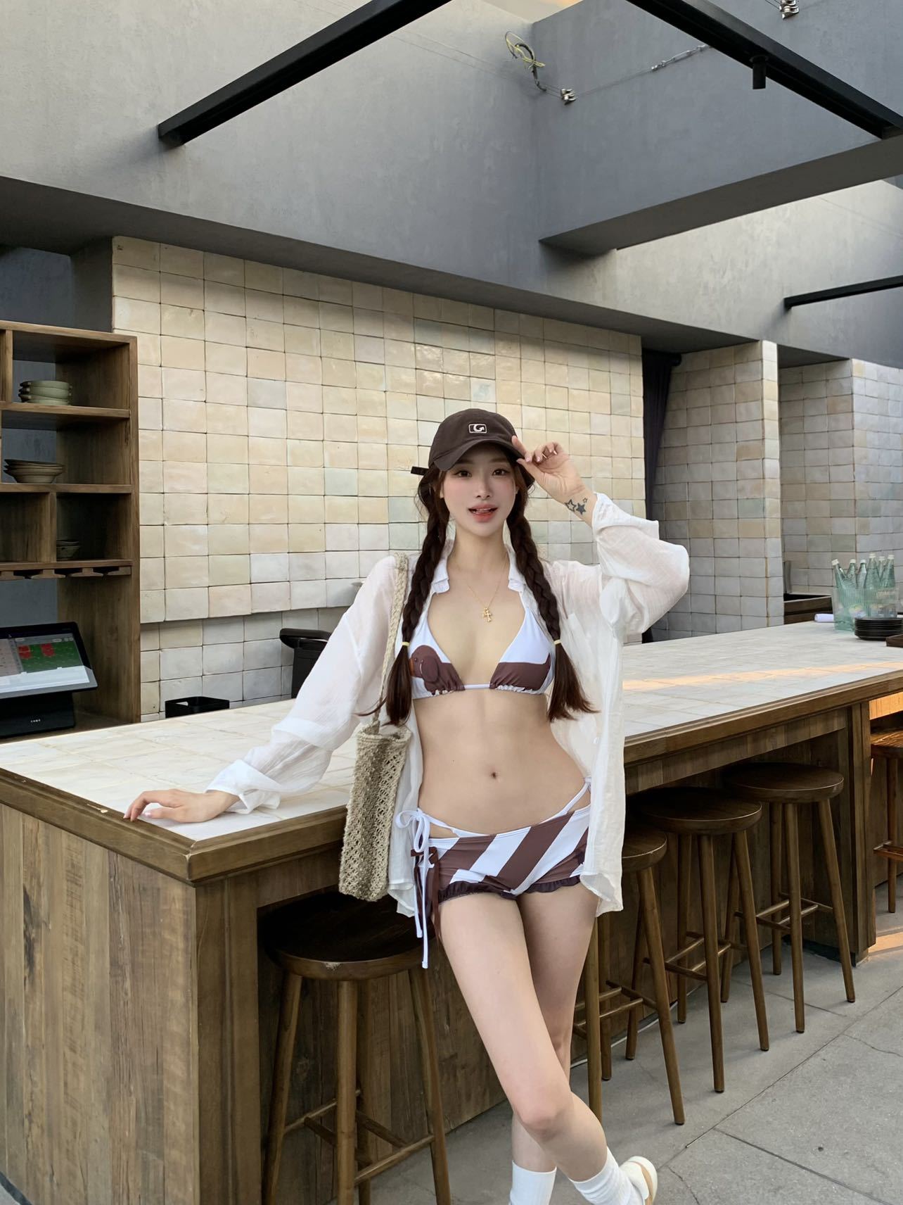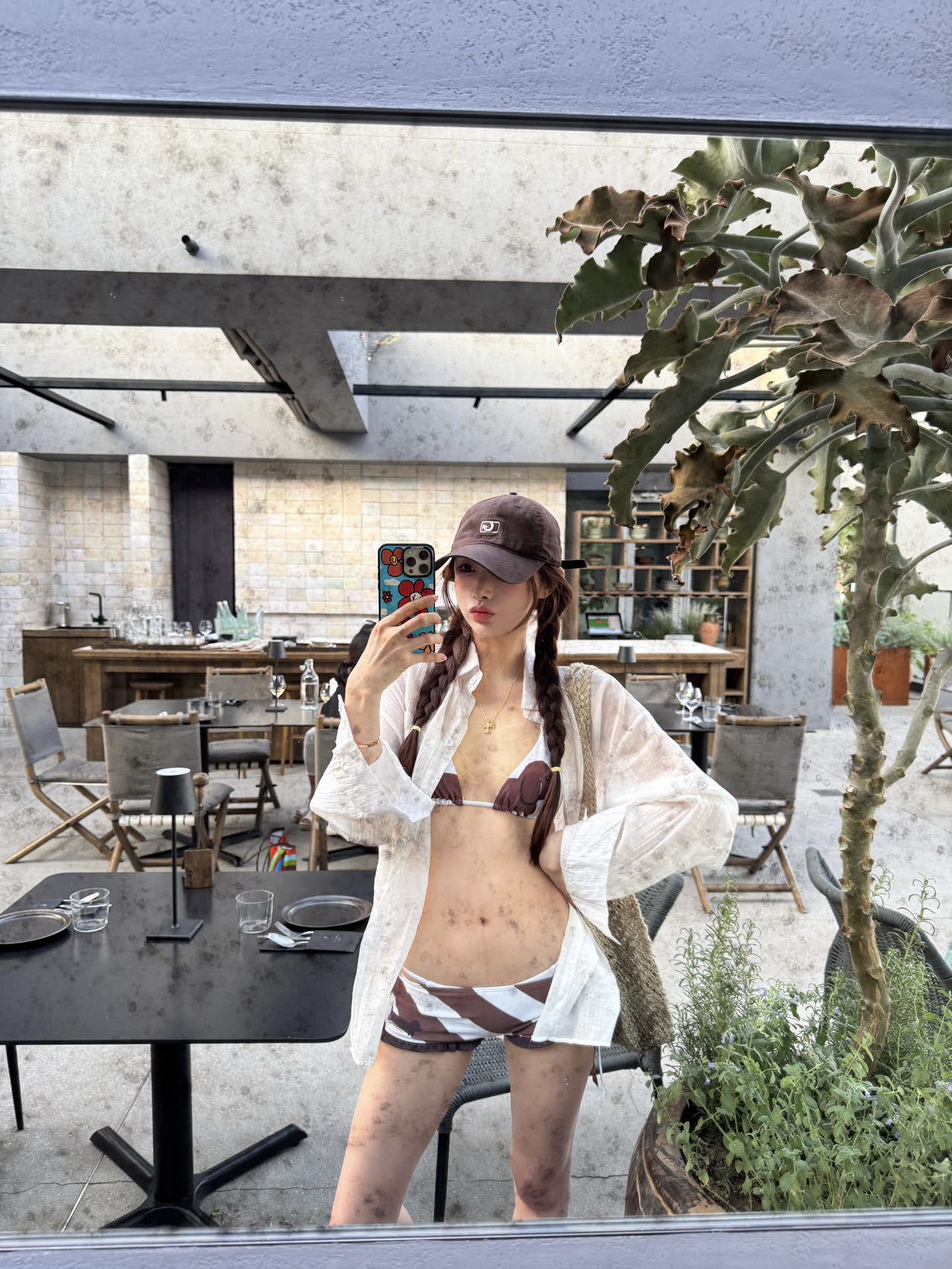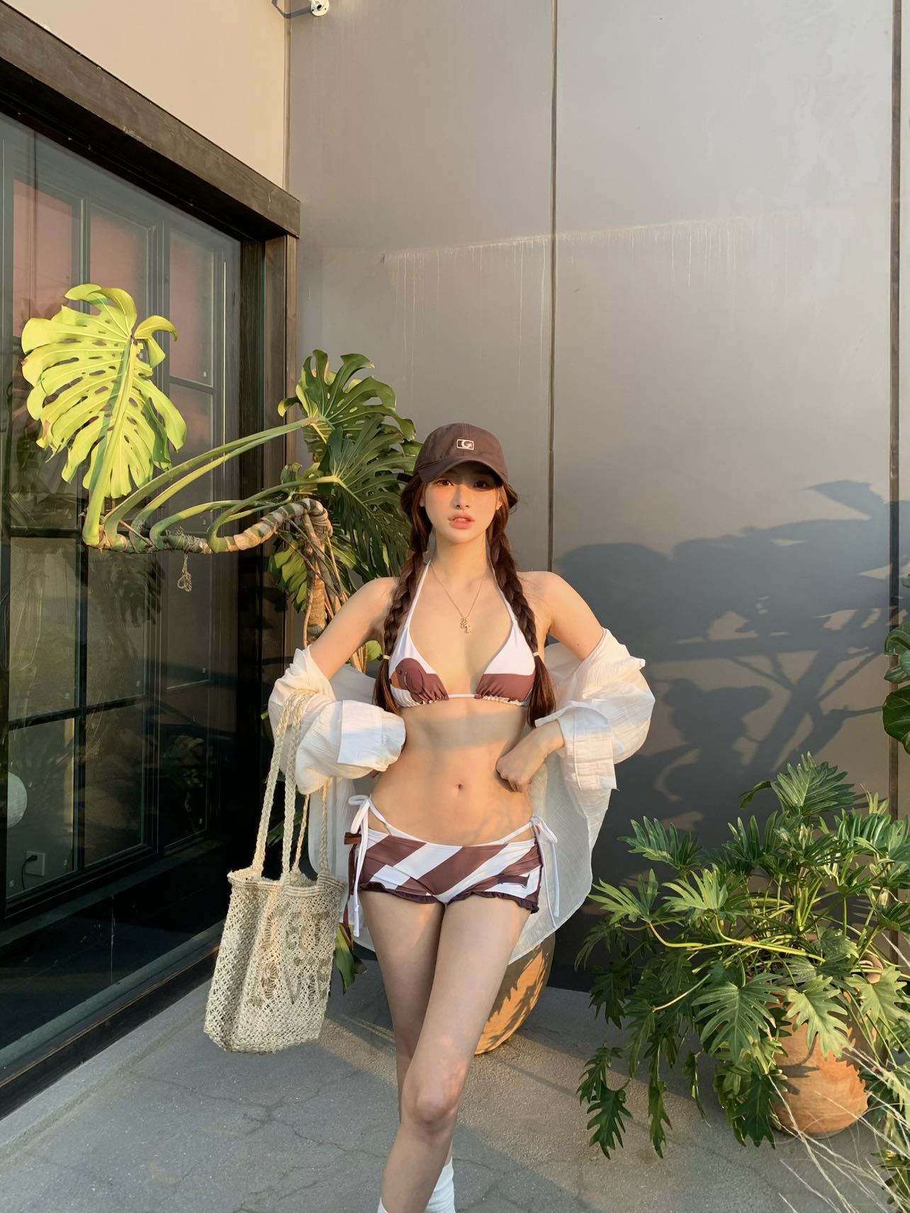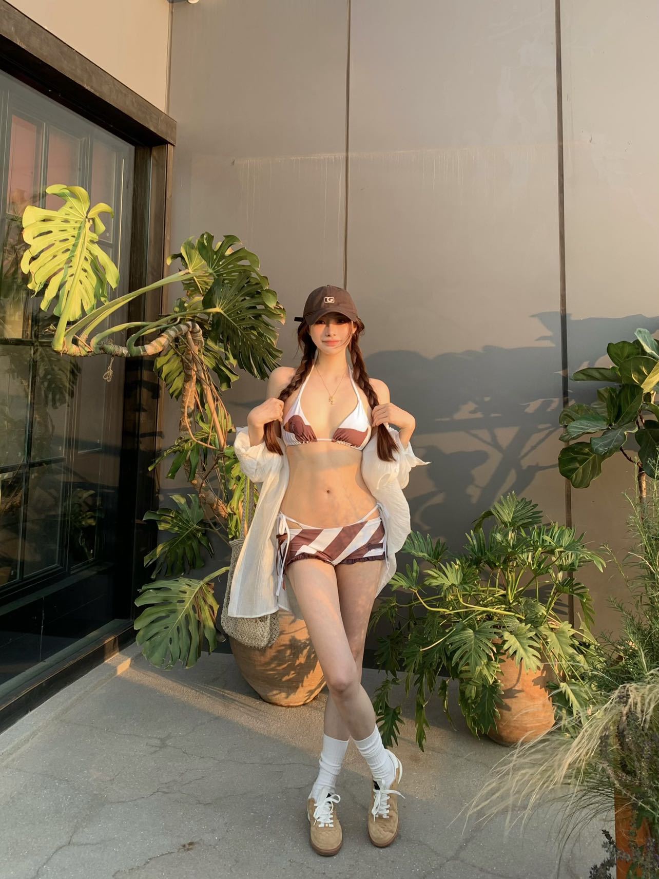 한국 스타일의 새로운 스플릿 퓨어 디자이어 비키니 수영복 여성 온천 휴가 강아지 프린트 푸시 업 3 피스 수영복스토어 가기