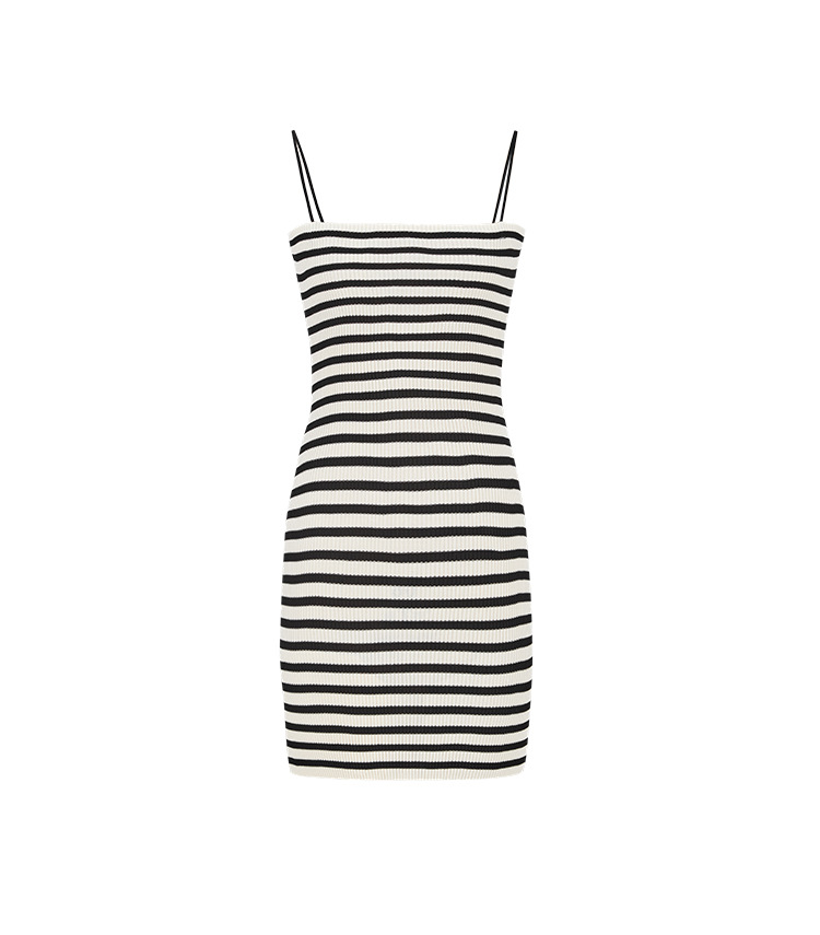 • 살구 블랙 스트라이프 니트 스커트