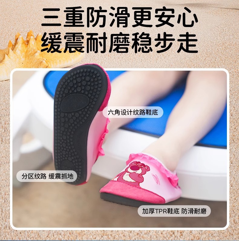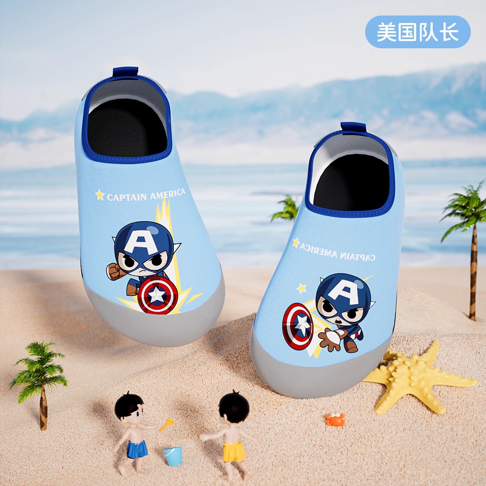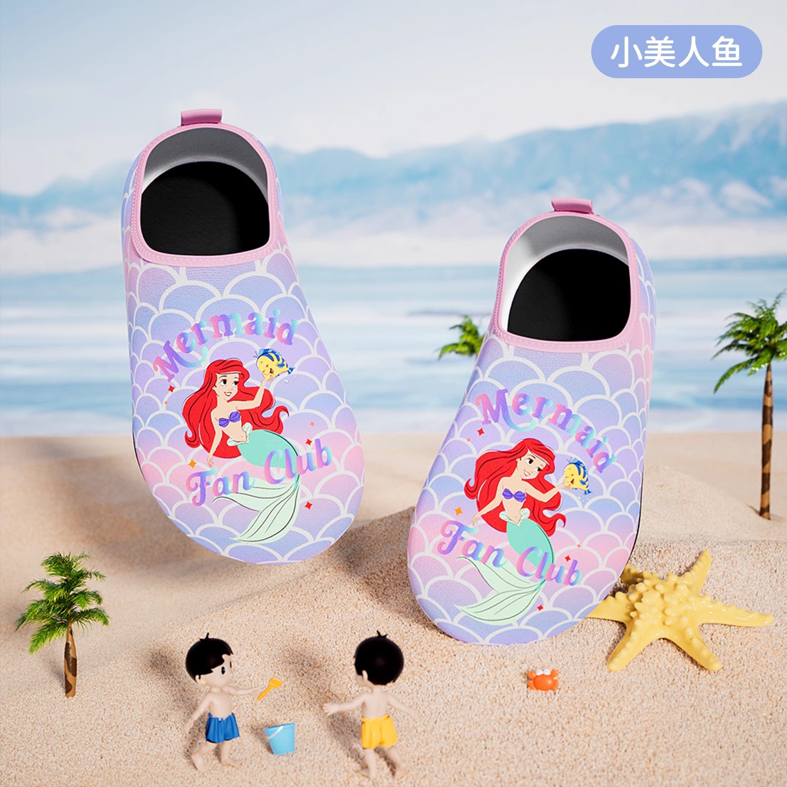 디즈니 어린이 해변 신발 2025 새로운 스타일 미끄럼 방지 및 절단 방지 강 신발 소년과 소녀를위한 부드러운 바닥 미끄럼 방지 해변 신발 및 양말