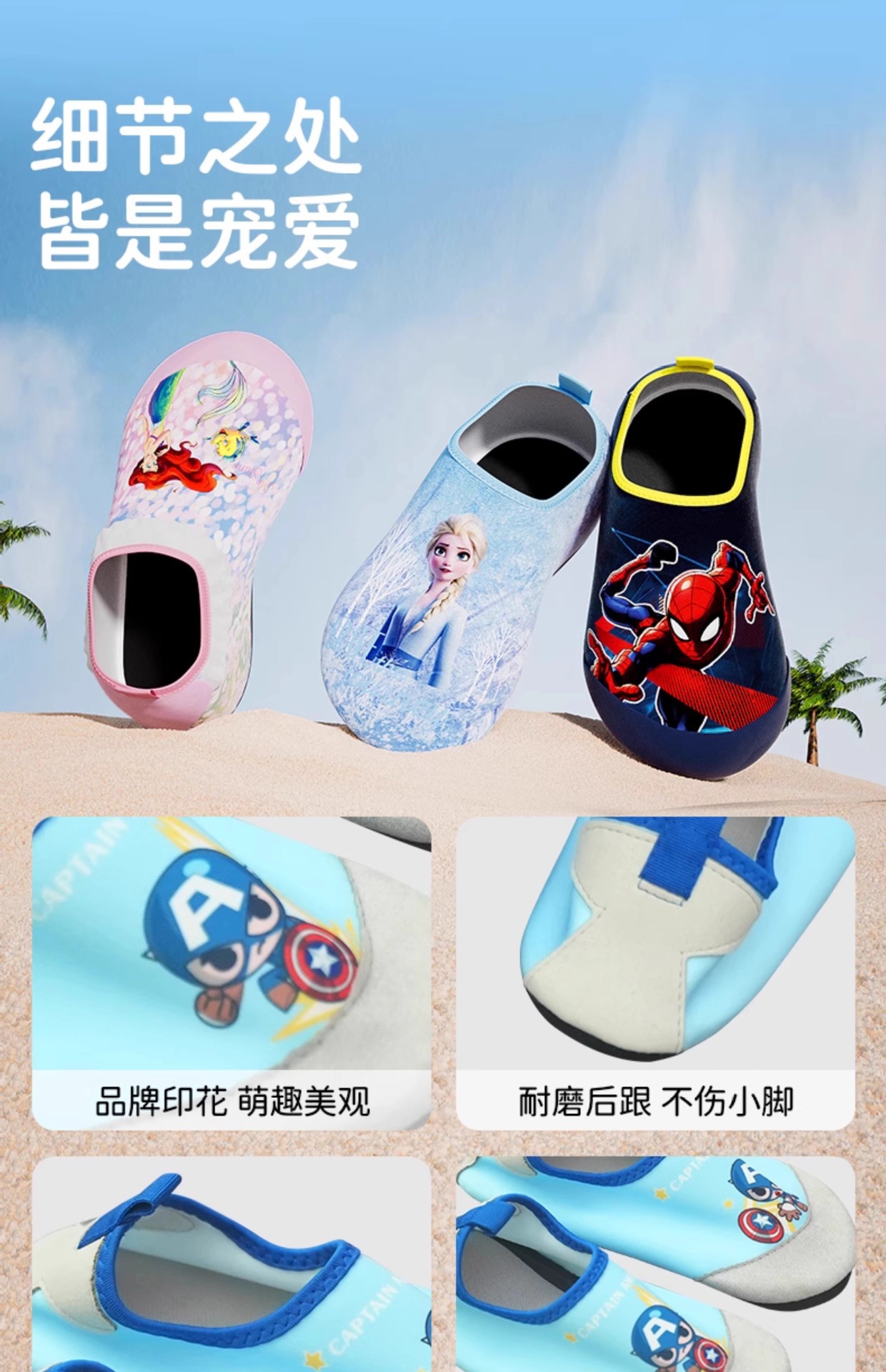디즈니 어린이 해변 신발 2025 새로운 스타일 미끄럼 방지 및 절단 방지 강 신발 소년과 소녀를위한 부드러운 바닥 미끄럼 방지 해변 신발 및 양말스토어 가기