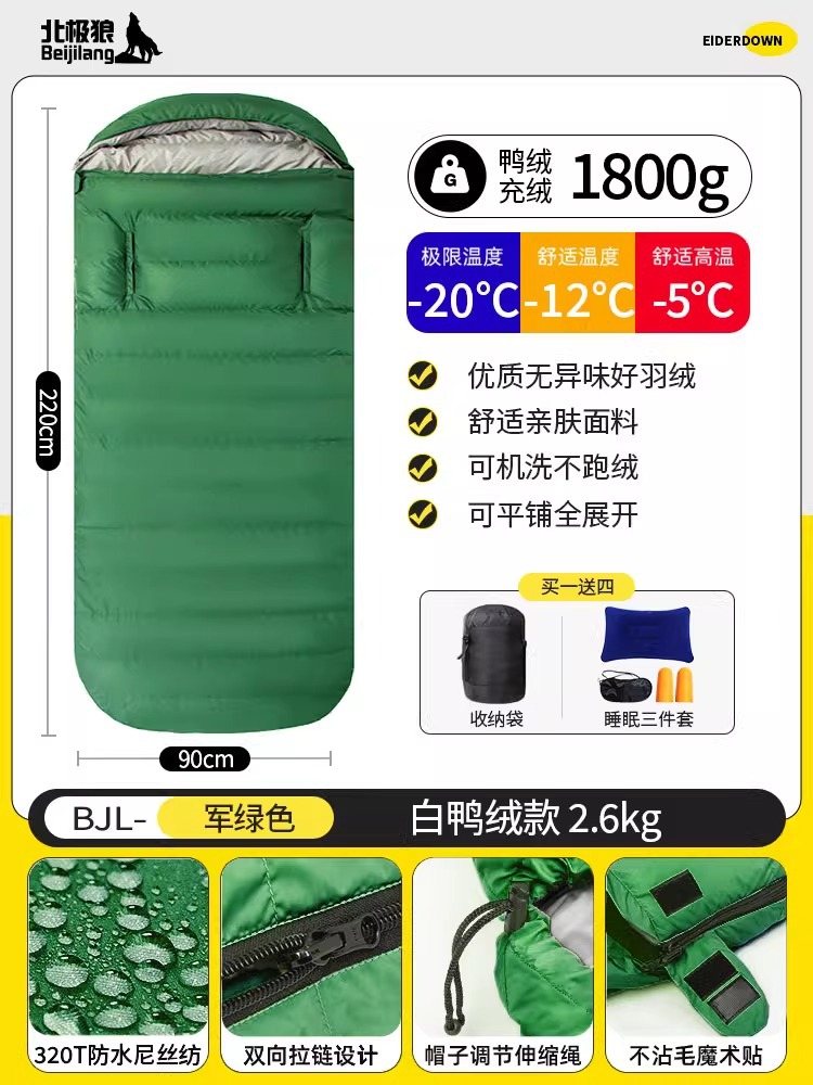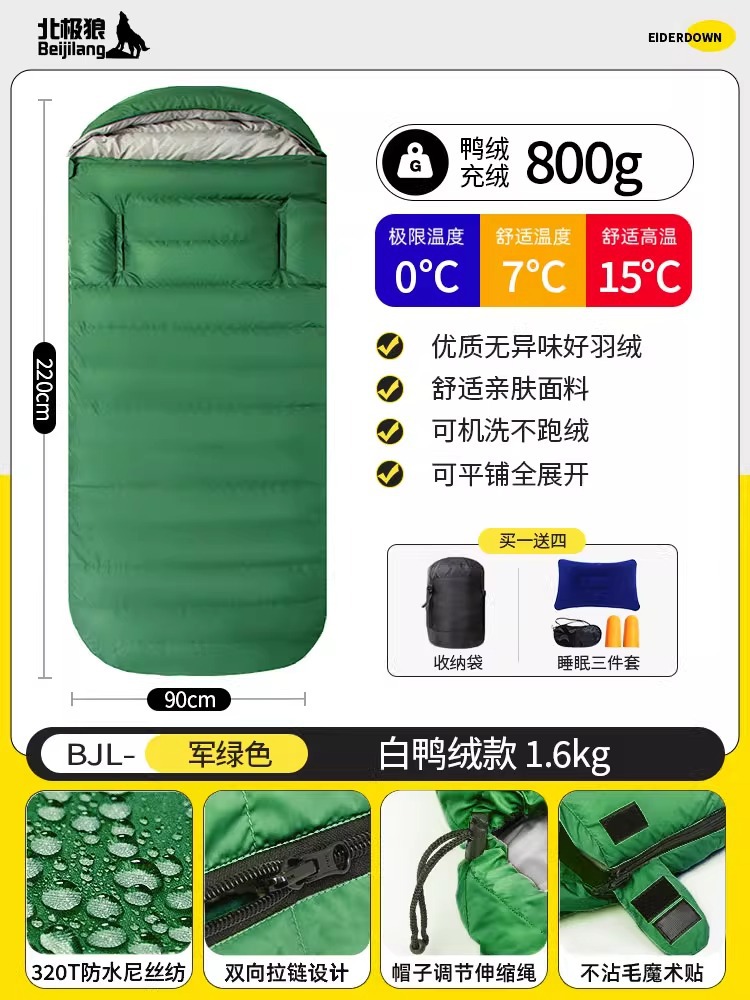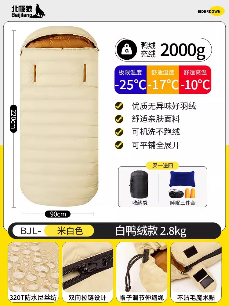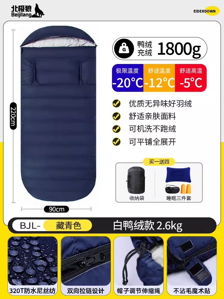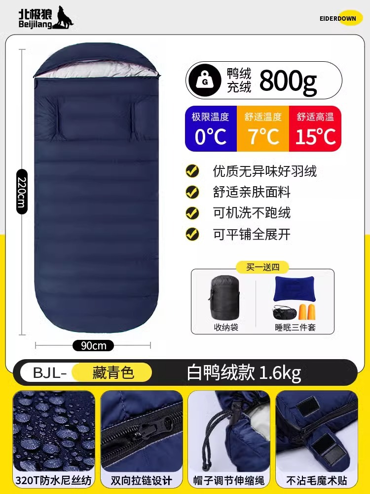 다운 침낭 90cm 손길이 넓어지고 확대된 성인 방한 야외 겨울 사계절 사무실 점심 시간