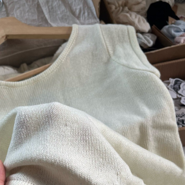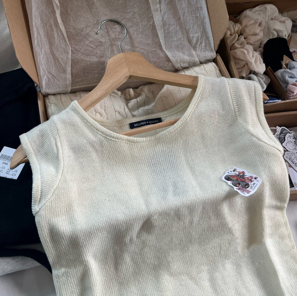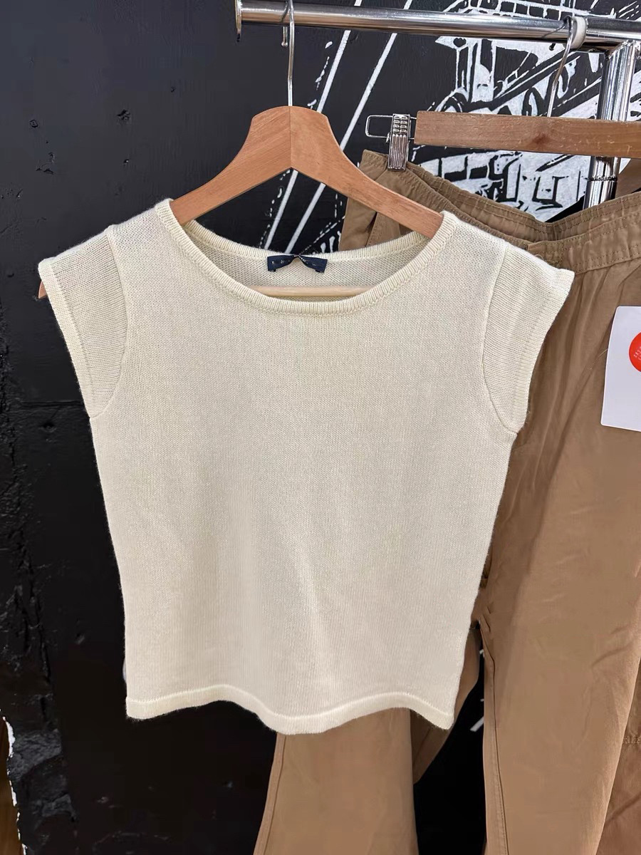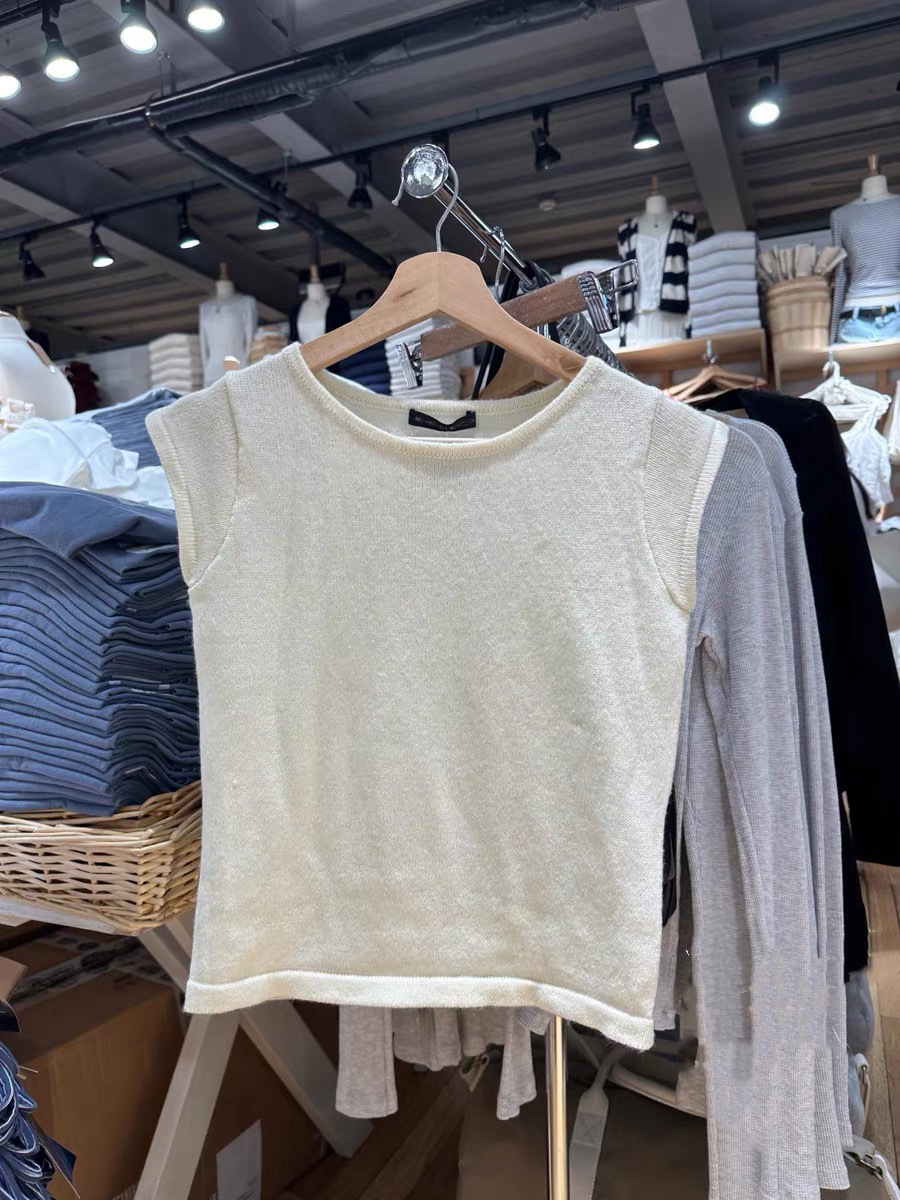 BM 스타일 새로운 라운드 넥 플라잉 반팔 니트 조끼 여성용 bm 솔리드 컬러 다목적 짧은 슬림 스웨터스토어 가기