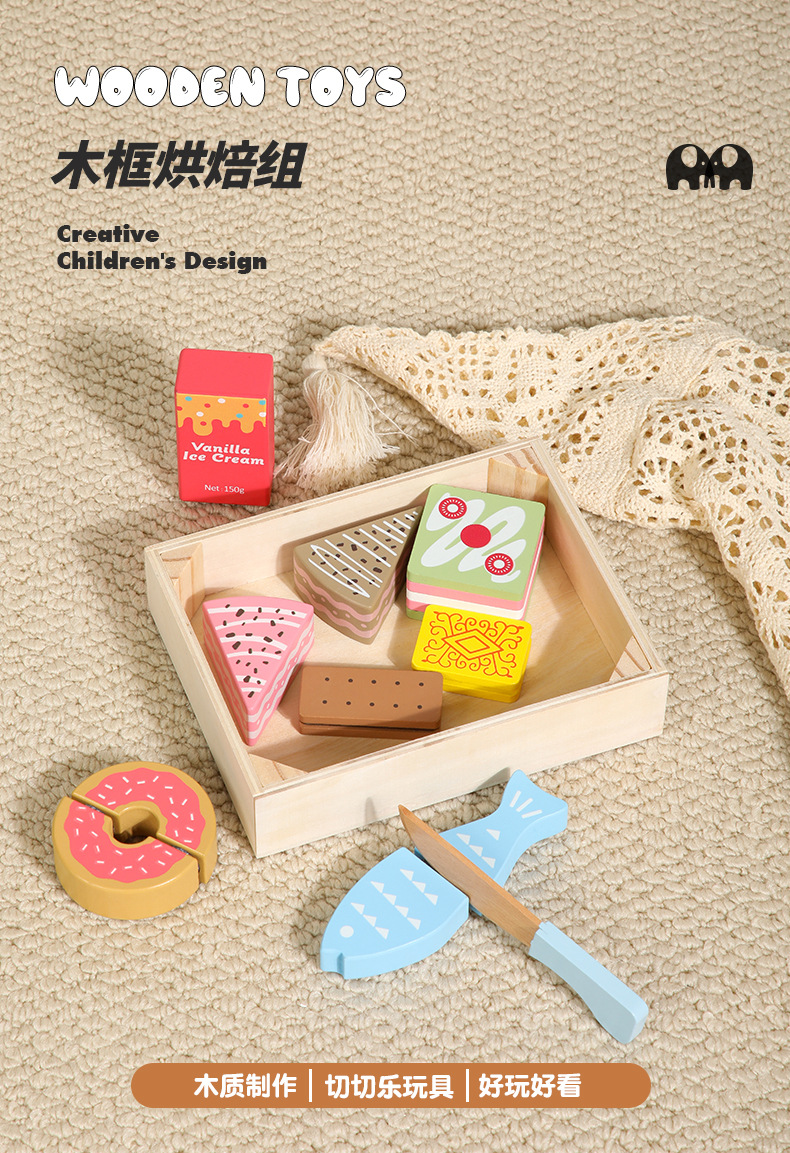 어린이 조기 교육 나무 프레임 베이킹 세트 접착 과일 및 야채 절단 교육 주방 놀이 시뮬레이션 장난감스토어 가기