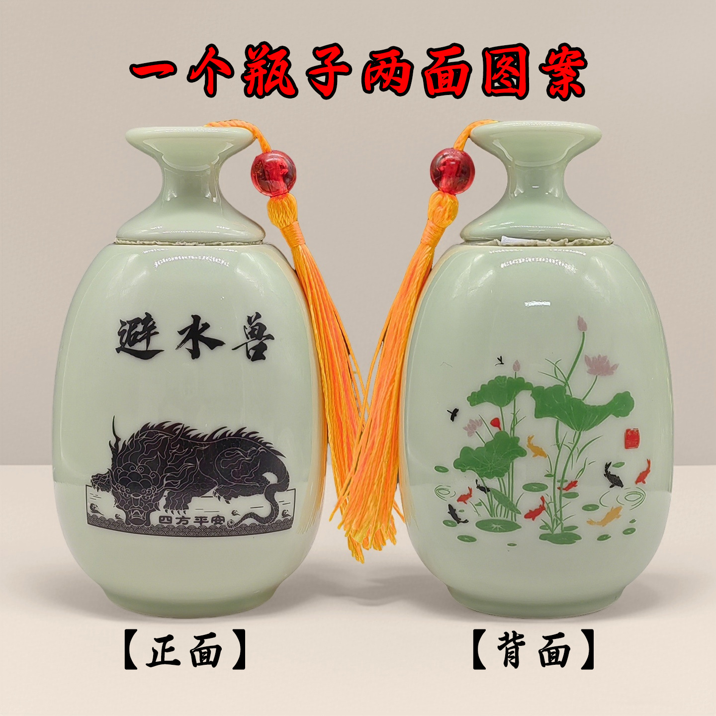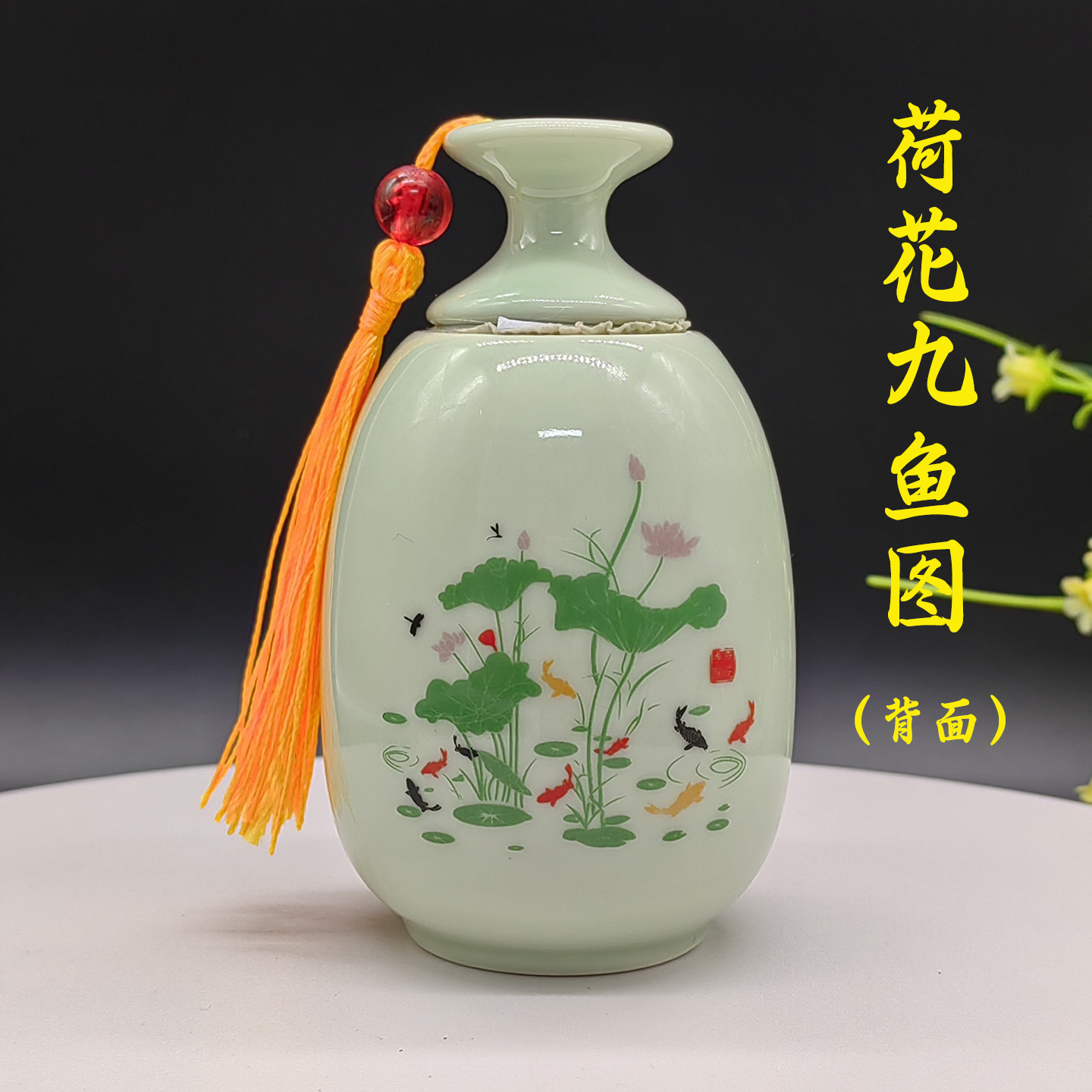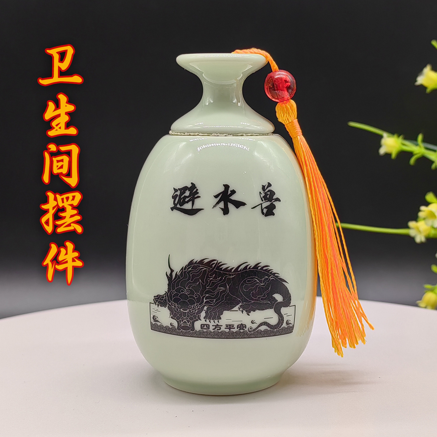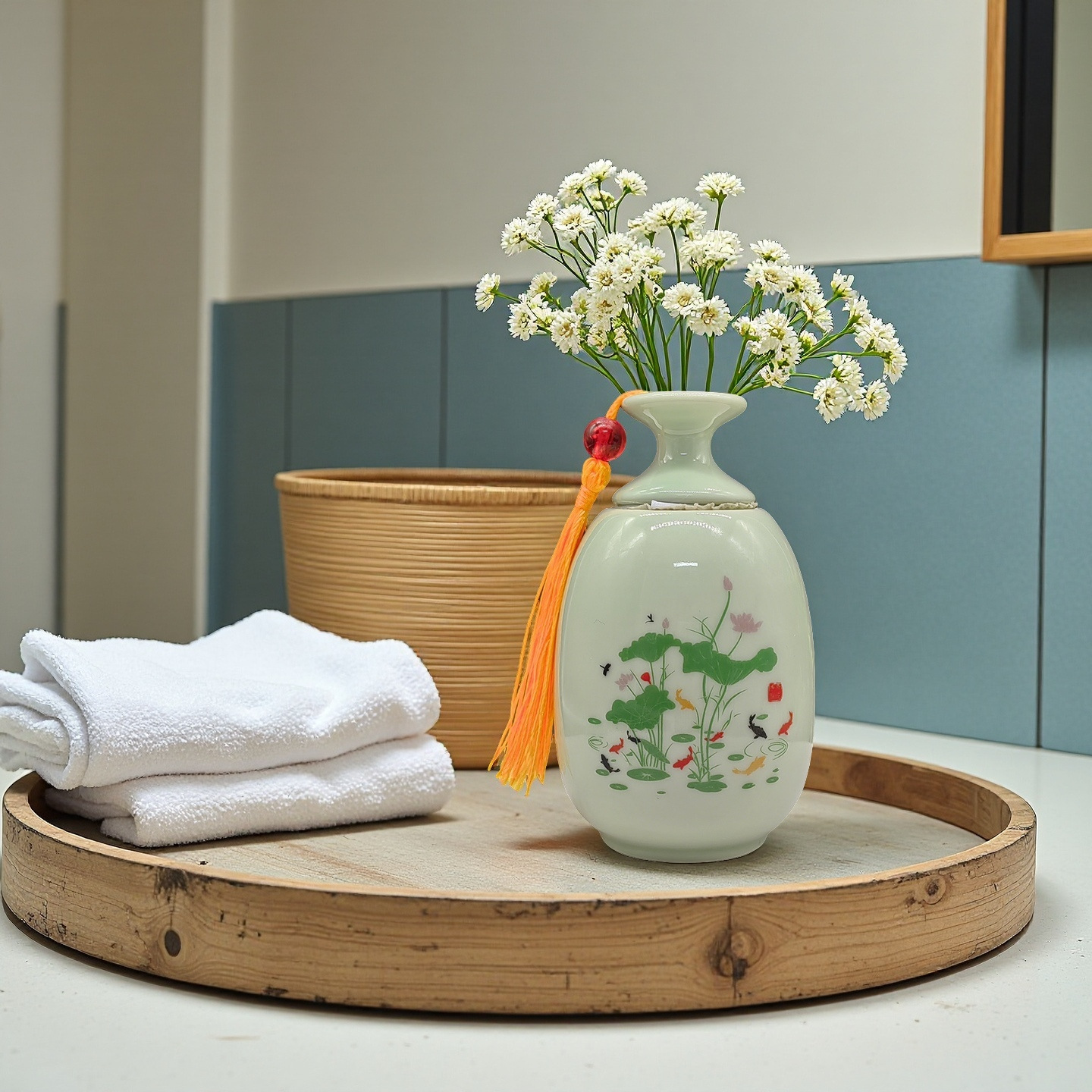 노란색 술 물을 피하는 야수 병 연꽃과 물고기 그림 세라믹 장식품 욕실 장식품 노란색 술 스타일