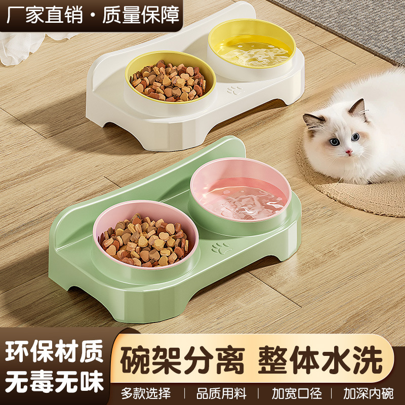 고양이 그릇, 친환경 고양이 밥그릇, 고양이 밥그릇, 물과 먹이를 위한 이중 그릇, 경사진 개 그릇