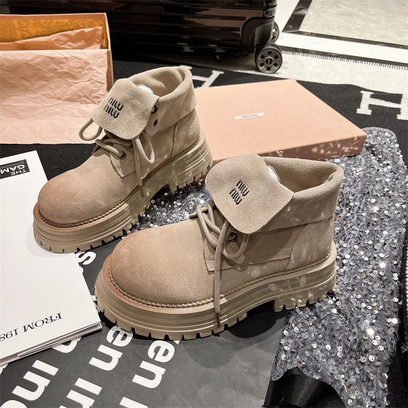 어린이 젖빛 부드러운 가죽 마틴 부츠 2025 새로운 스타일의 레터 라펠 오토바이 부츠 소녀 레드 부츠 투웨어 플랫폼 슈즈스토어 가기