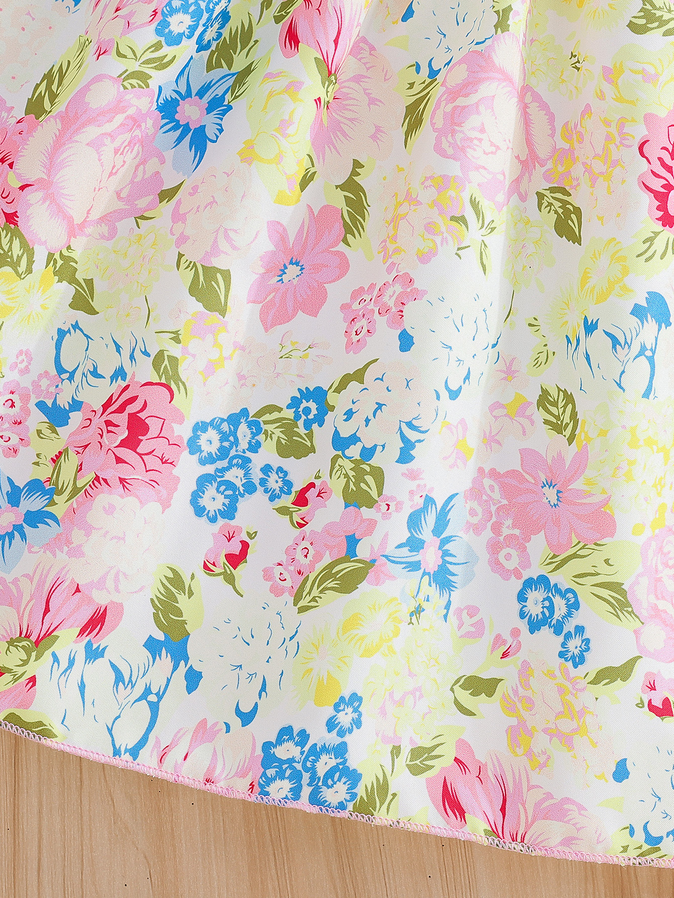 여름 소녀 서스펜더 드레스 핑크 랜턴 슬리브 작은 코트 유화 스타일 프린트 스커트 어린이 스커트 정장