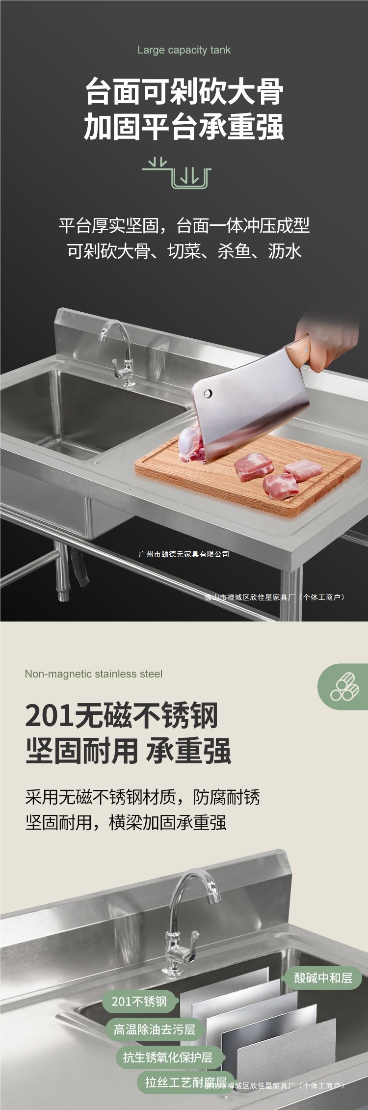 주방 식당 플랫폼이있는 스탠드가있는 상업용 무료 배송 스테인레스 스틸 싱크 싱글 및 더블 싱크 식기 세척 싱크대스토어 가기