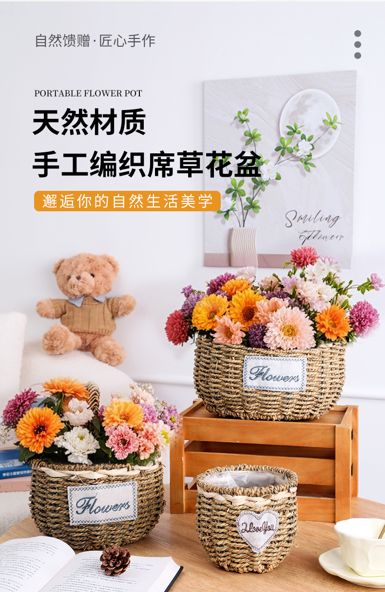 대나무 꽃 바구니 휴대용 꽃 말린 꽃 펜던트 거실 장식 도매 꽃 바구니 꽃 등나무 꽃꽂이스토어 가기