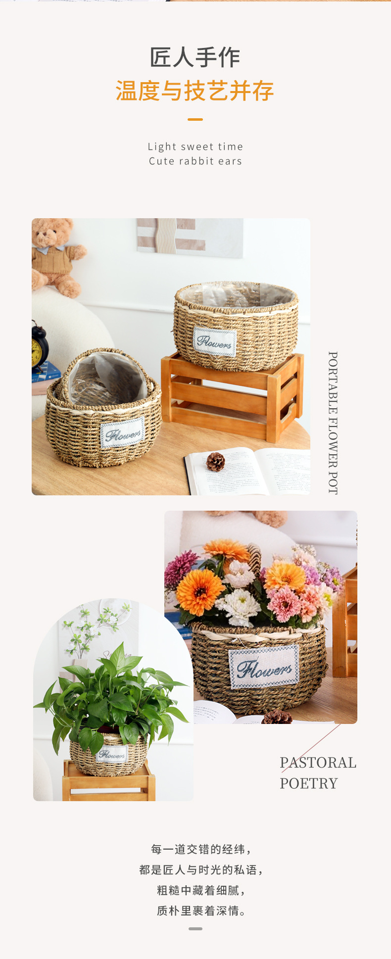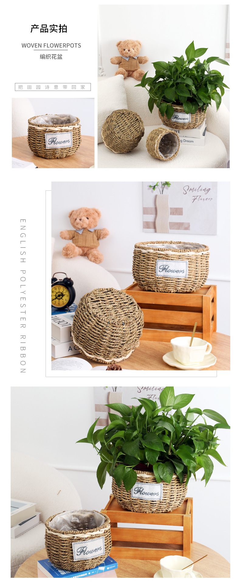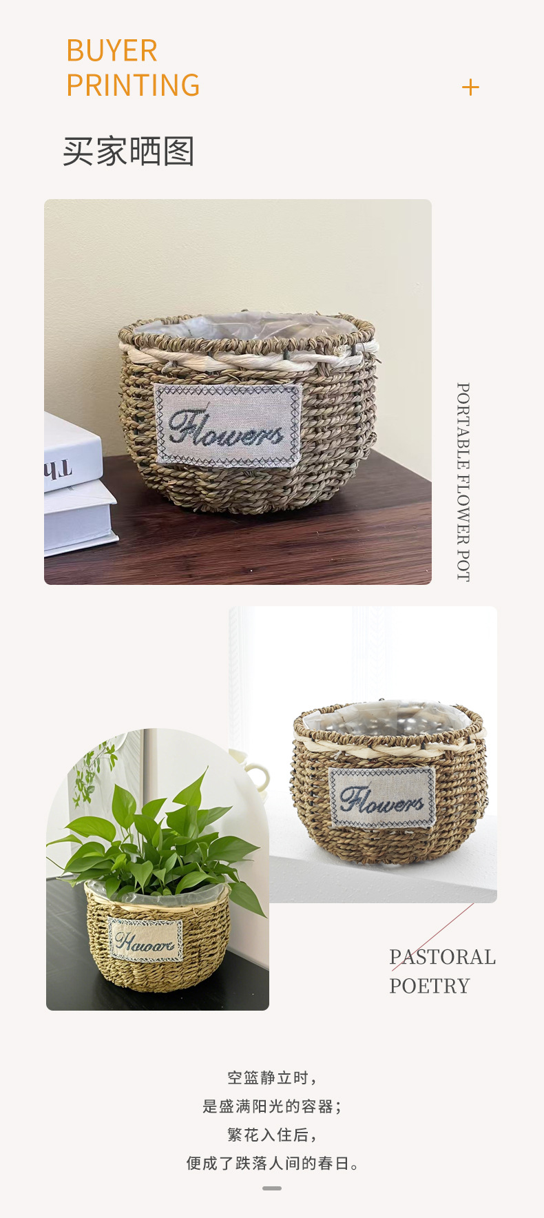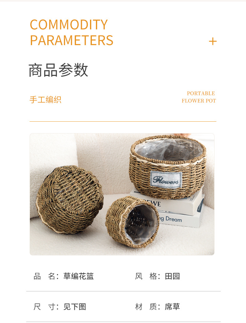 • 밀짚 둥근 대야, 입 너비 20cm