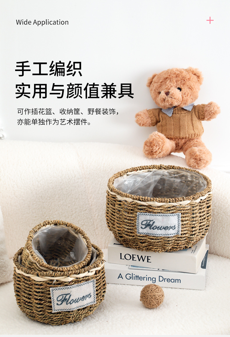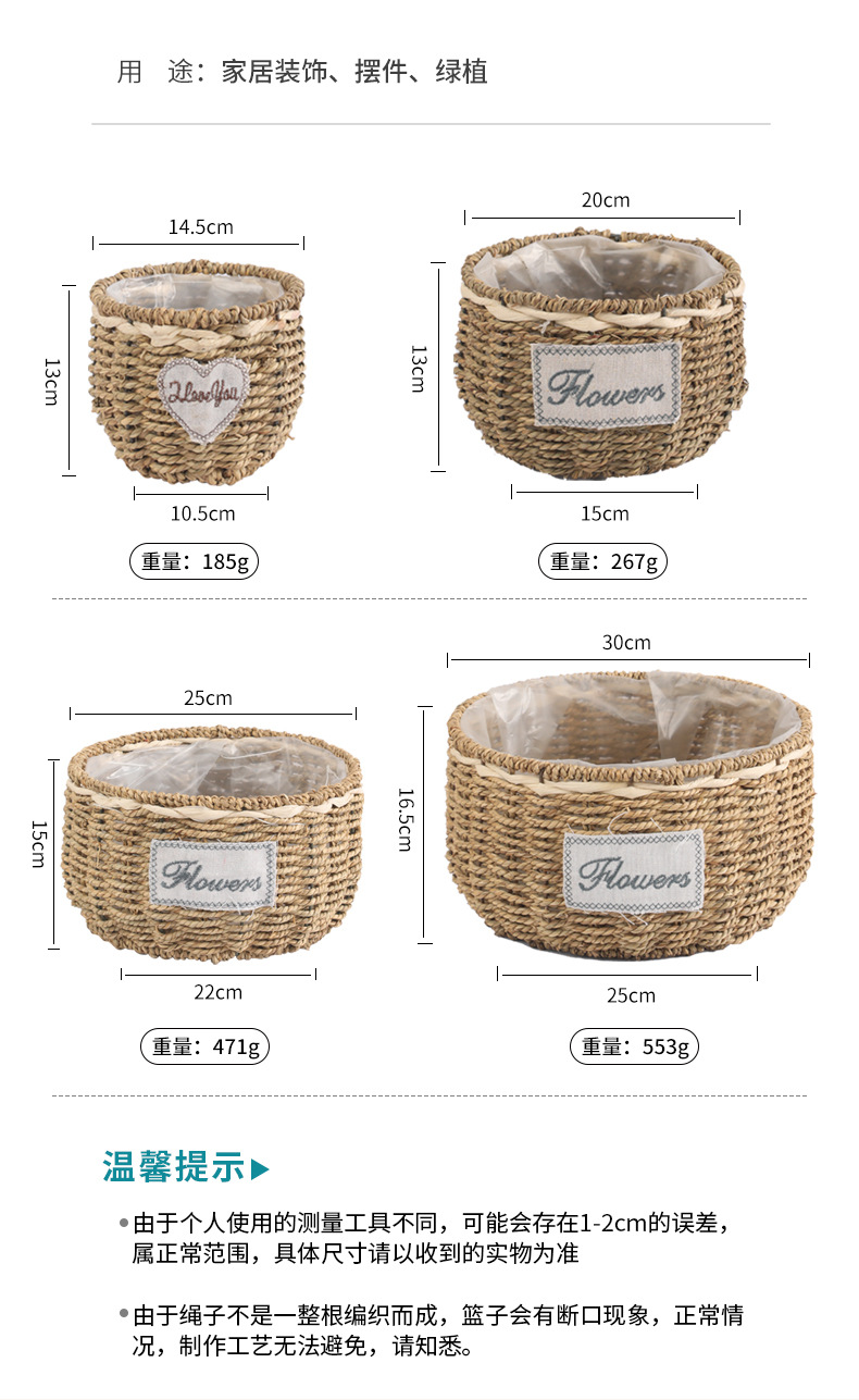 • 밀짚 둥근 대야, 입 너비 30cm