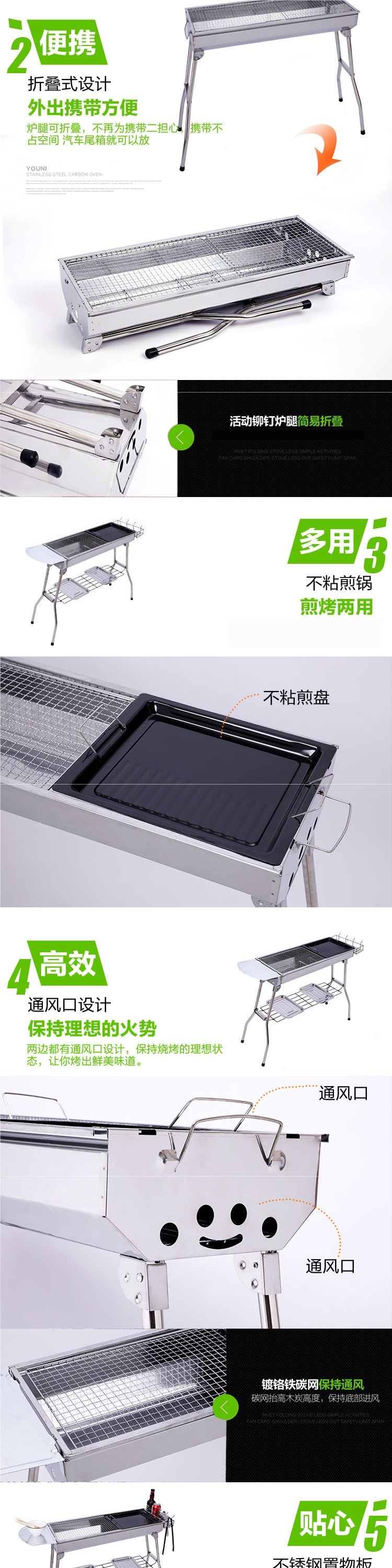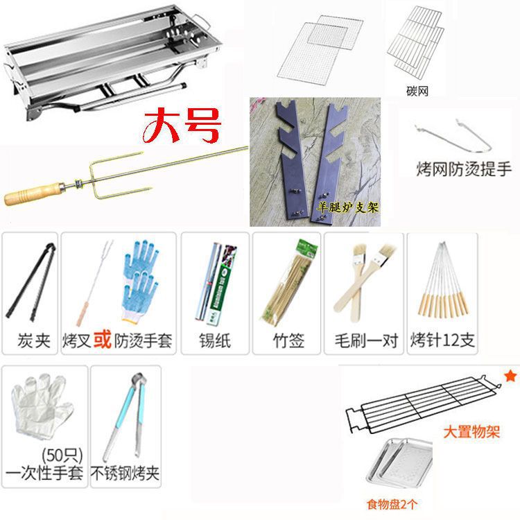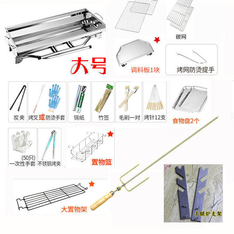 야외 스테인레스 스틸 바베큐 그릴 캠핑 홈 대형 바베큐 그릴 휴대용 접이식 숯불 그릴