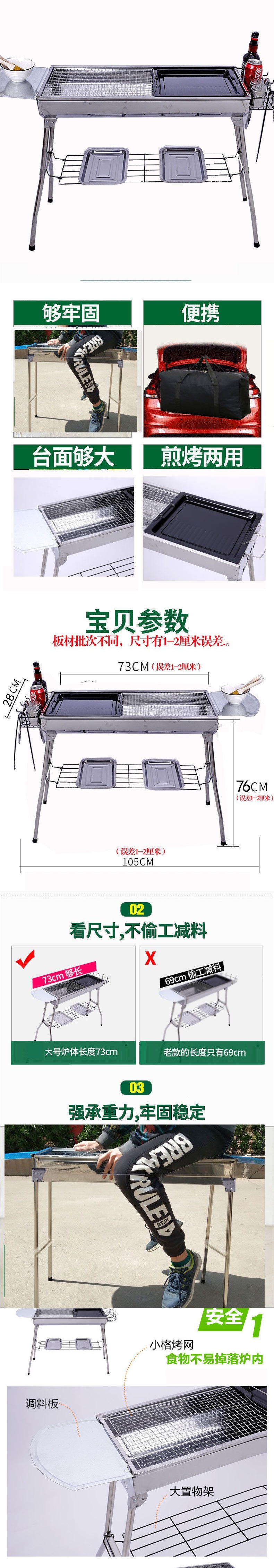 야외 스테인레스 스틸 바베큐 그릴 캠핑 홈 대형 바베큐 그릴 휴대용 접이식 숯불 그릴스토어 가기