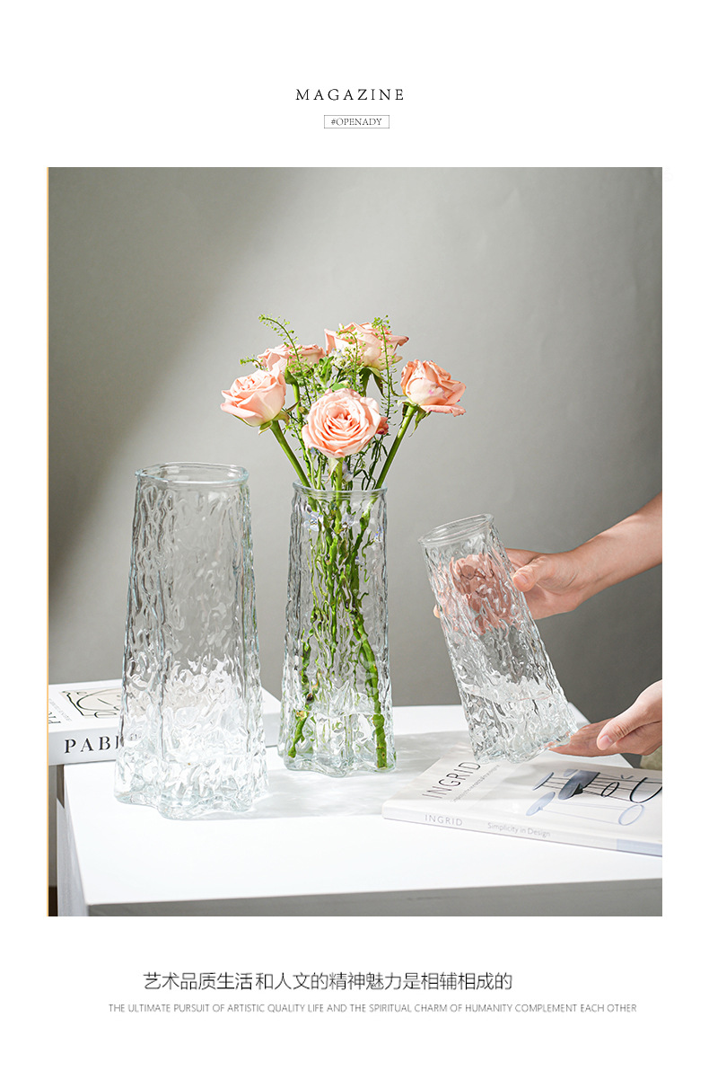 간단한 현대적인 스타일의 고급 빙하 꽃병 유리 투명 물 꽃꽂이 꽃 거실 테이블 장식