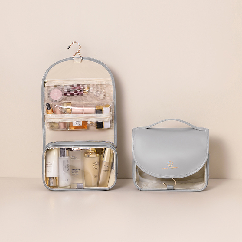 여성을위한 새로운 PU 화장품 가방 대용량 휴대용 화장품 보관 가방 투명 PVC 방수 세면 용품 가방 화장품 가방