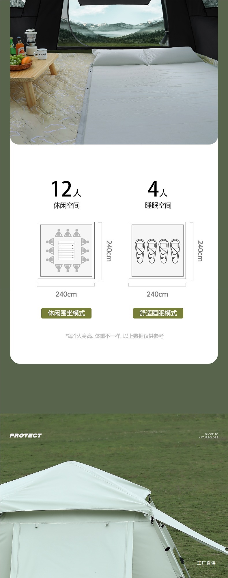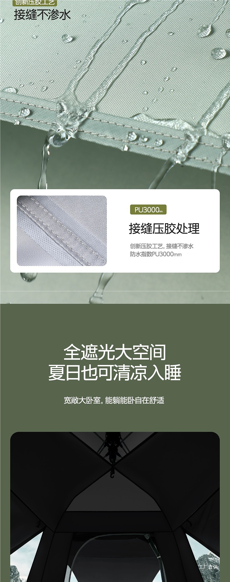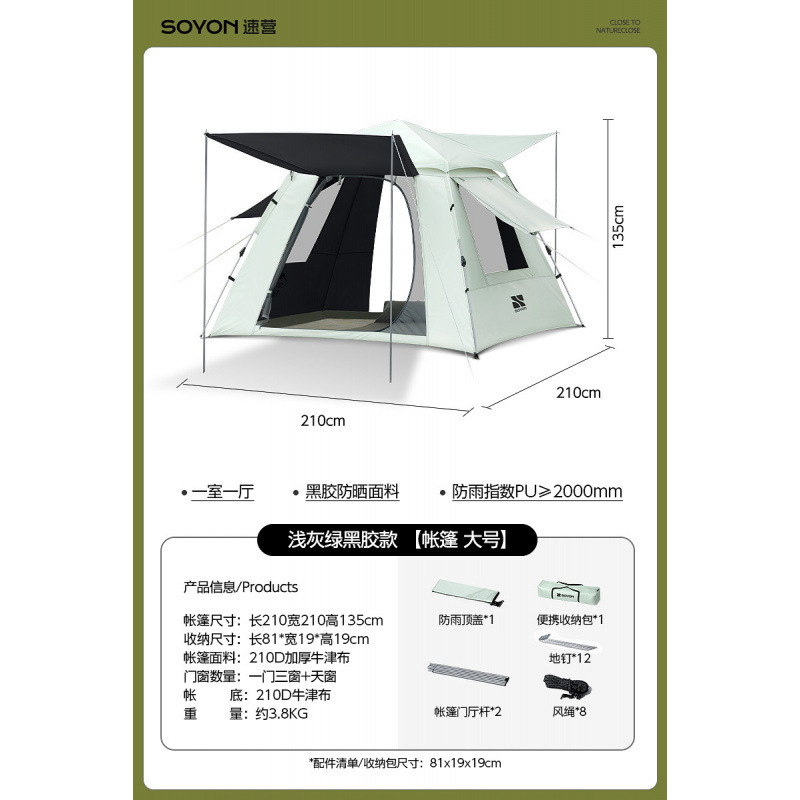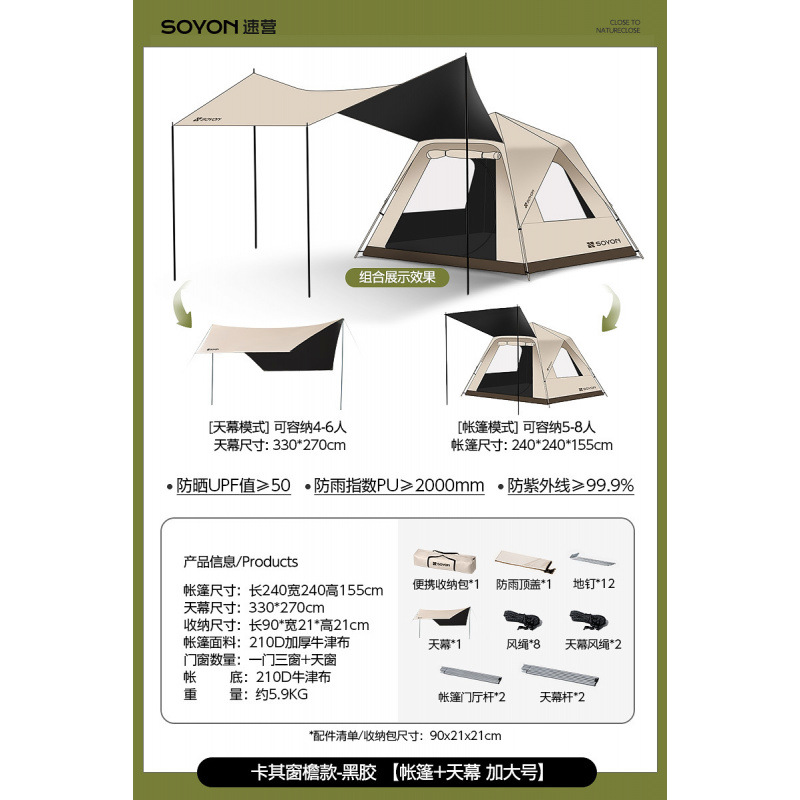 • 카키-[방습매트 패키지] 자외선 차단 블랙 플라스틱 텐트 [특대 사이즈 5~8인]
