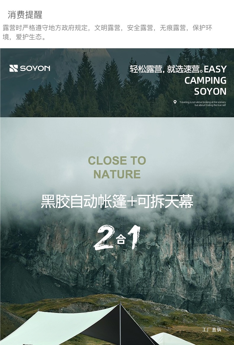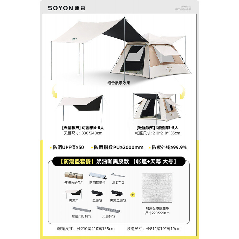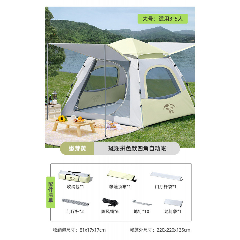 야외 휴대용 접이식 캠핑 야간 비 방지 두꺼운 캐노피 투인원 캠핑 풀 세트