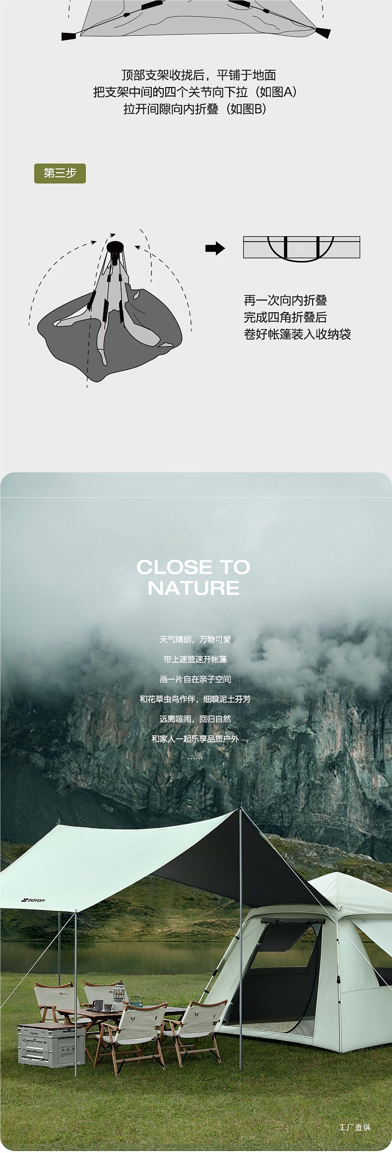 야외 휴대용 접이식 캠핑 야간 비 방지 두꺼운 캐노피 투인원 캠핑 풀 세트스토어 가기