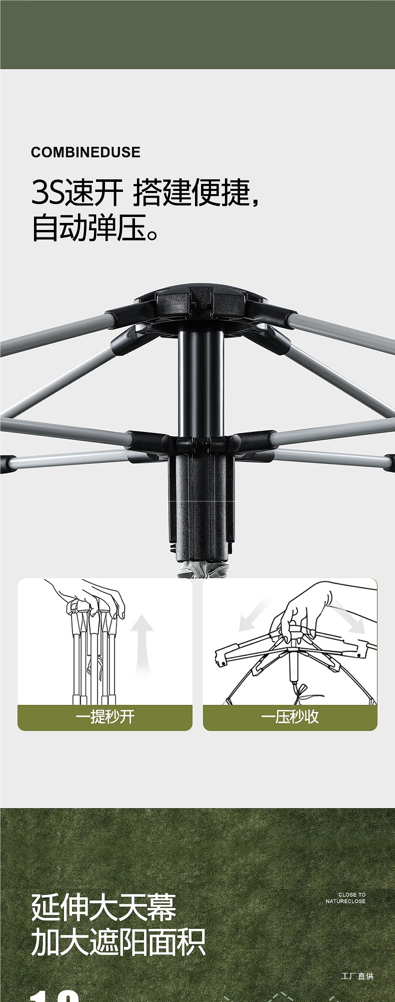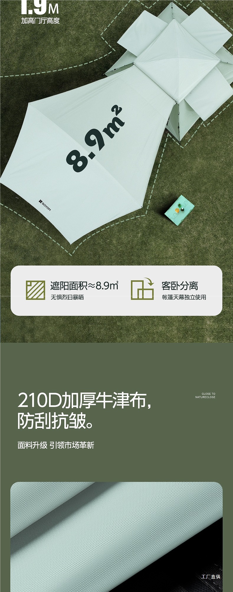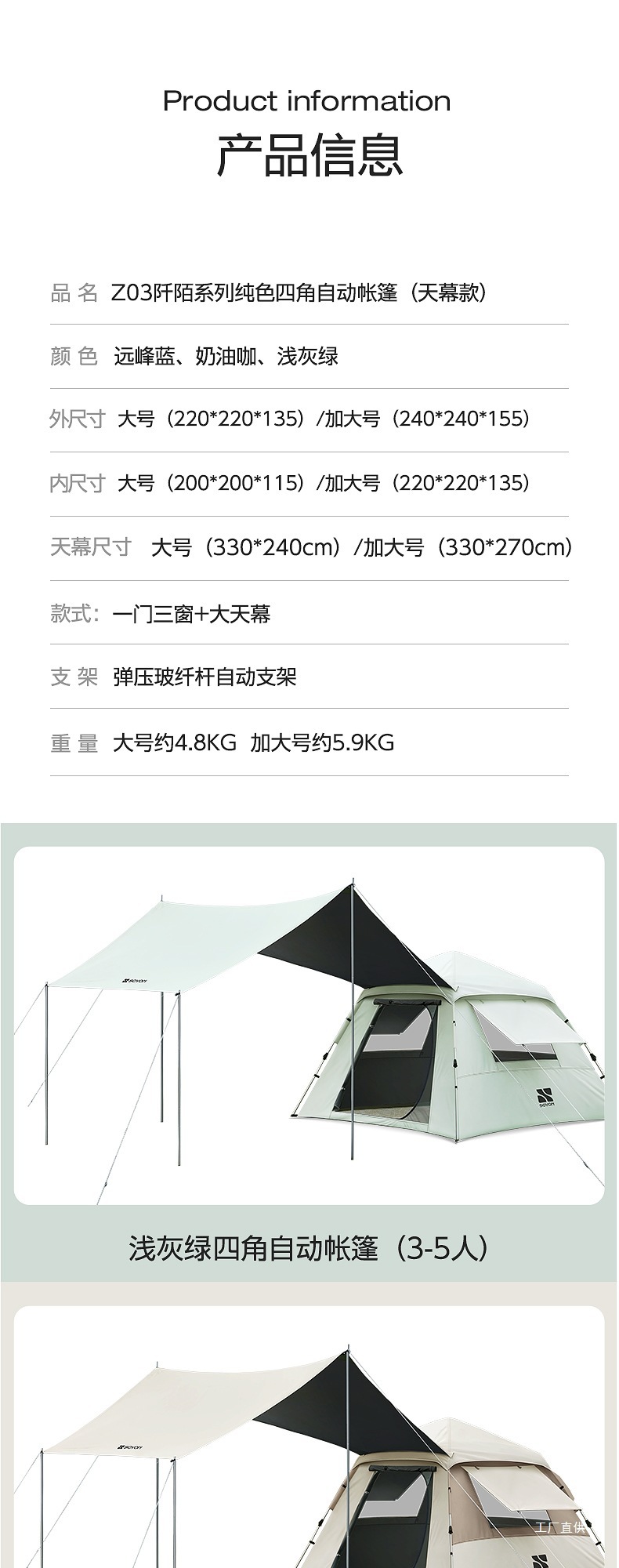 • 그레이 그린-[방습 패드 패키지] 실버 글루 텐트 + 캐노피 [특대 사이즈]