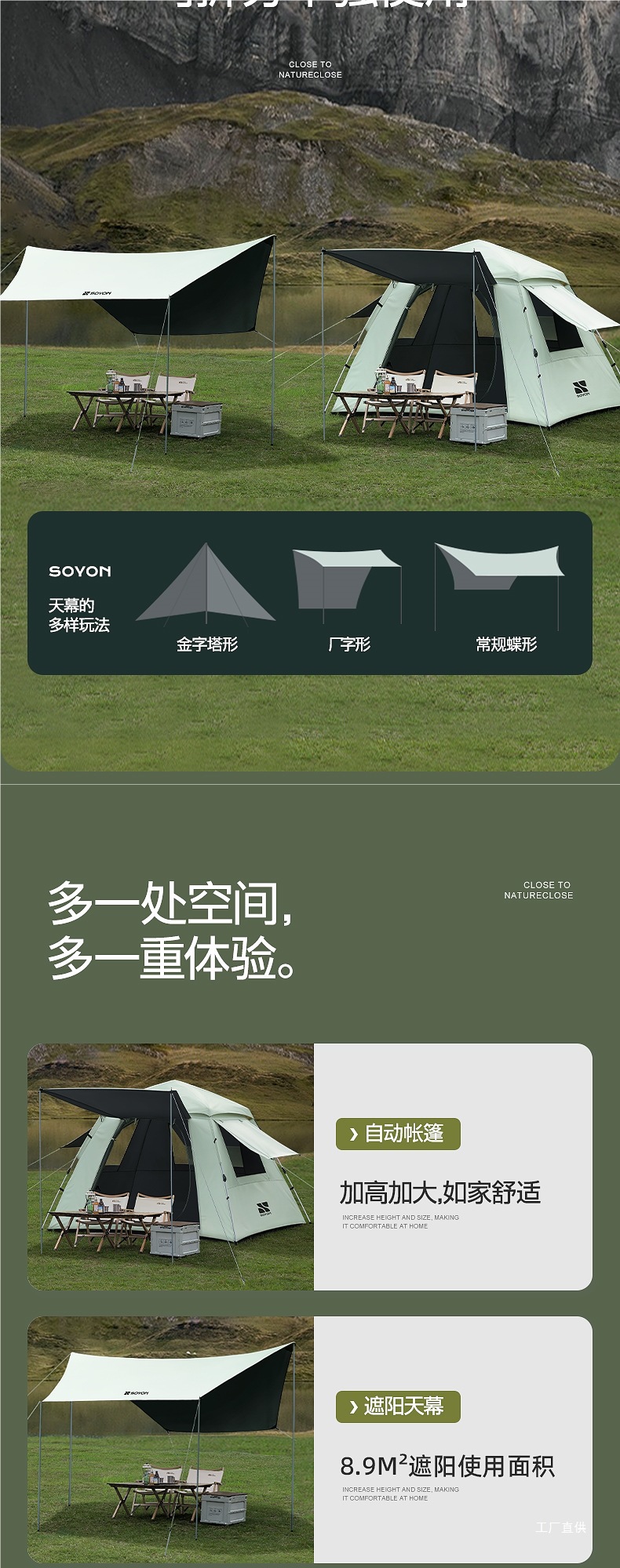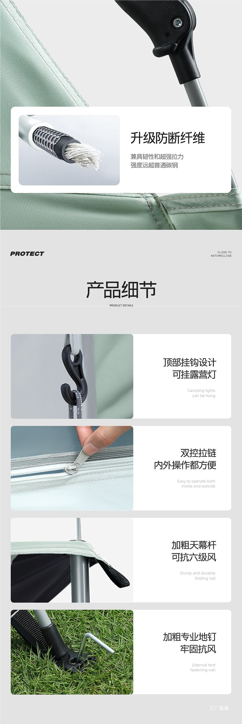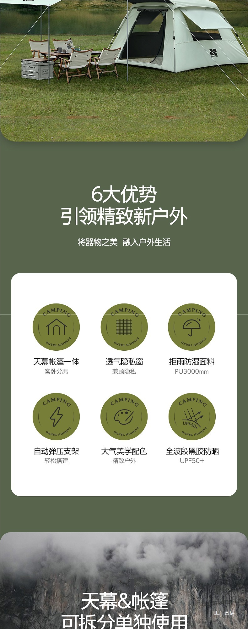 • 그레이 그린-[방습 패드 패키지] 실버 글루 텐트 + 캐노피 [특대 사이즈]