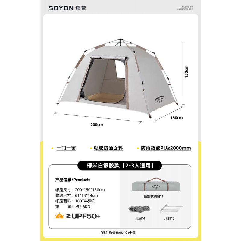 • 코코넛 라이스 화이트 실버 플라스틱 텐트 [소형 2~3인]