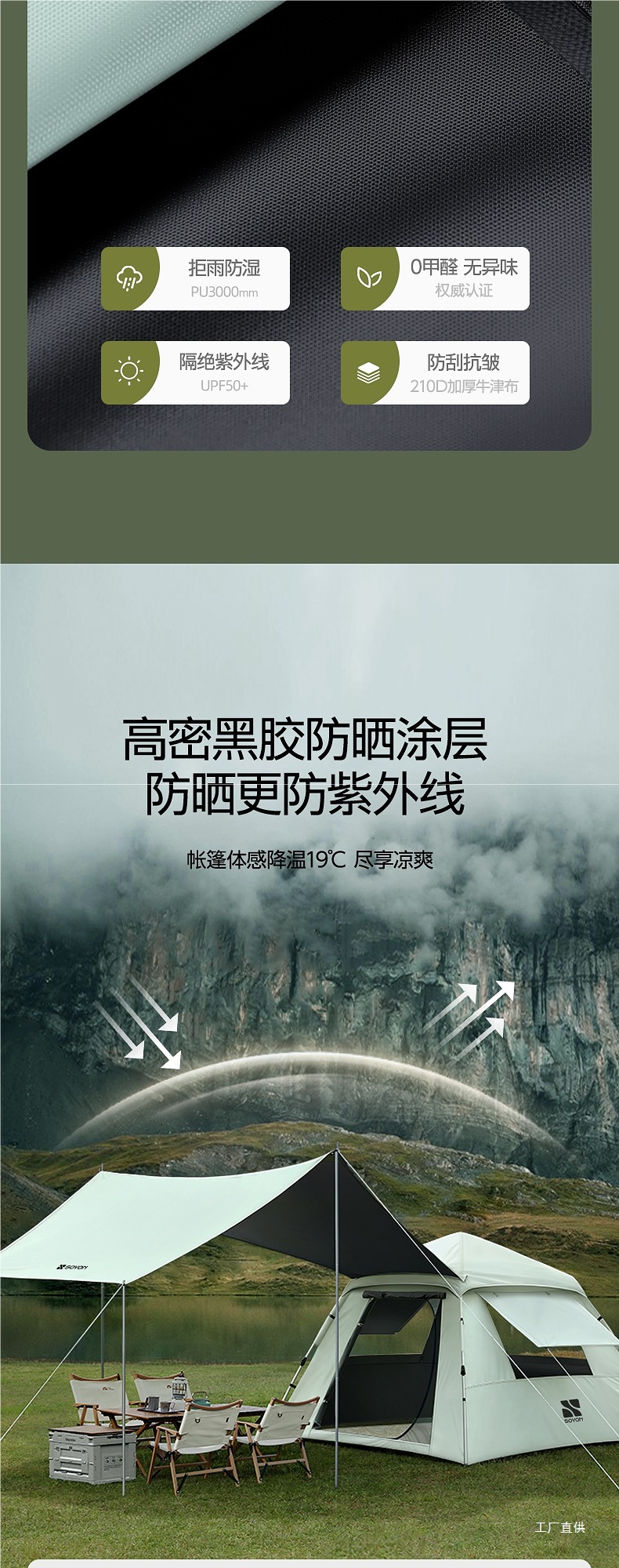 • 카키-[방습매트 패키지] 자외선 차단 블랙 플라스틱 텐트 + 캐노피 [대형]