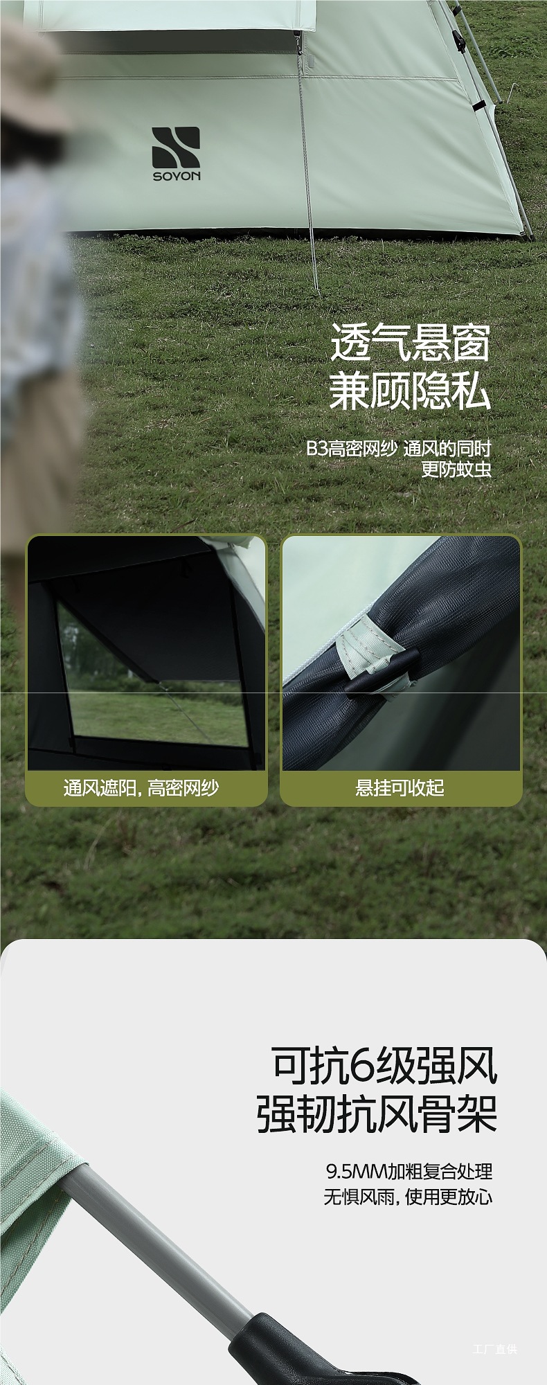 • 그레이 그린 자외선 차단 블랙 플라스틱 텐트 [대형 5~8인]