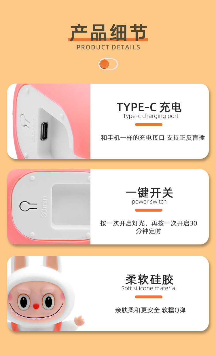 침실용 재미있는 부드러운 빛 랩밤 조명, 타이머 USB 충전식 팻램프, 티톡 애니메이션 분위기 조명