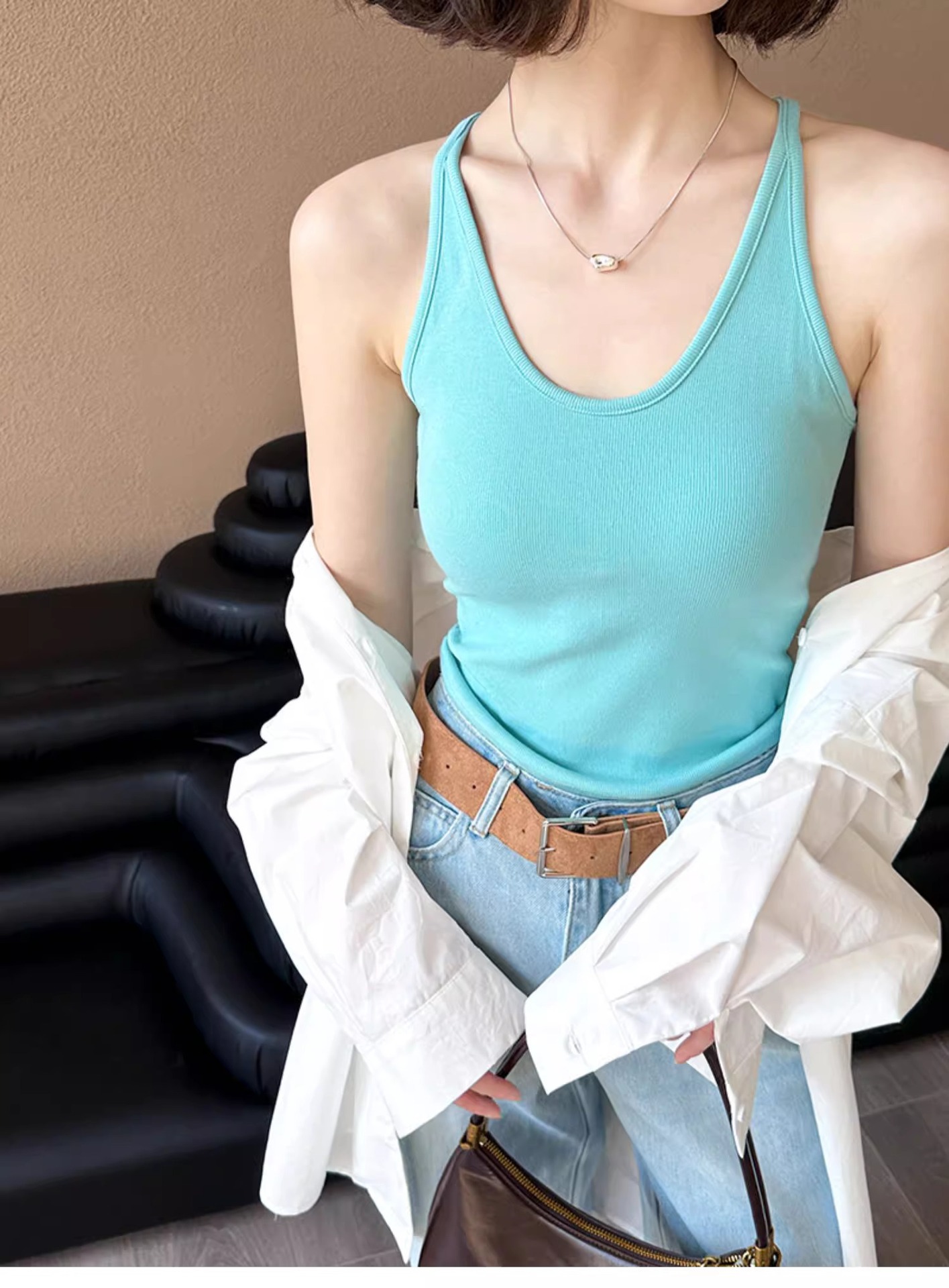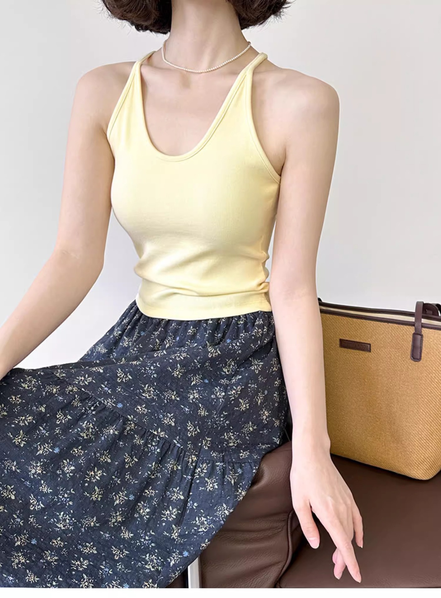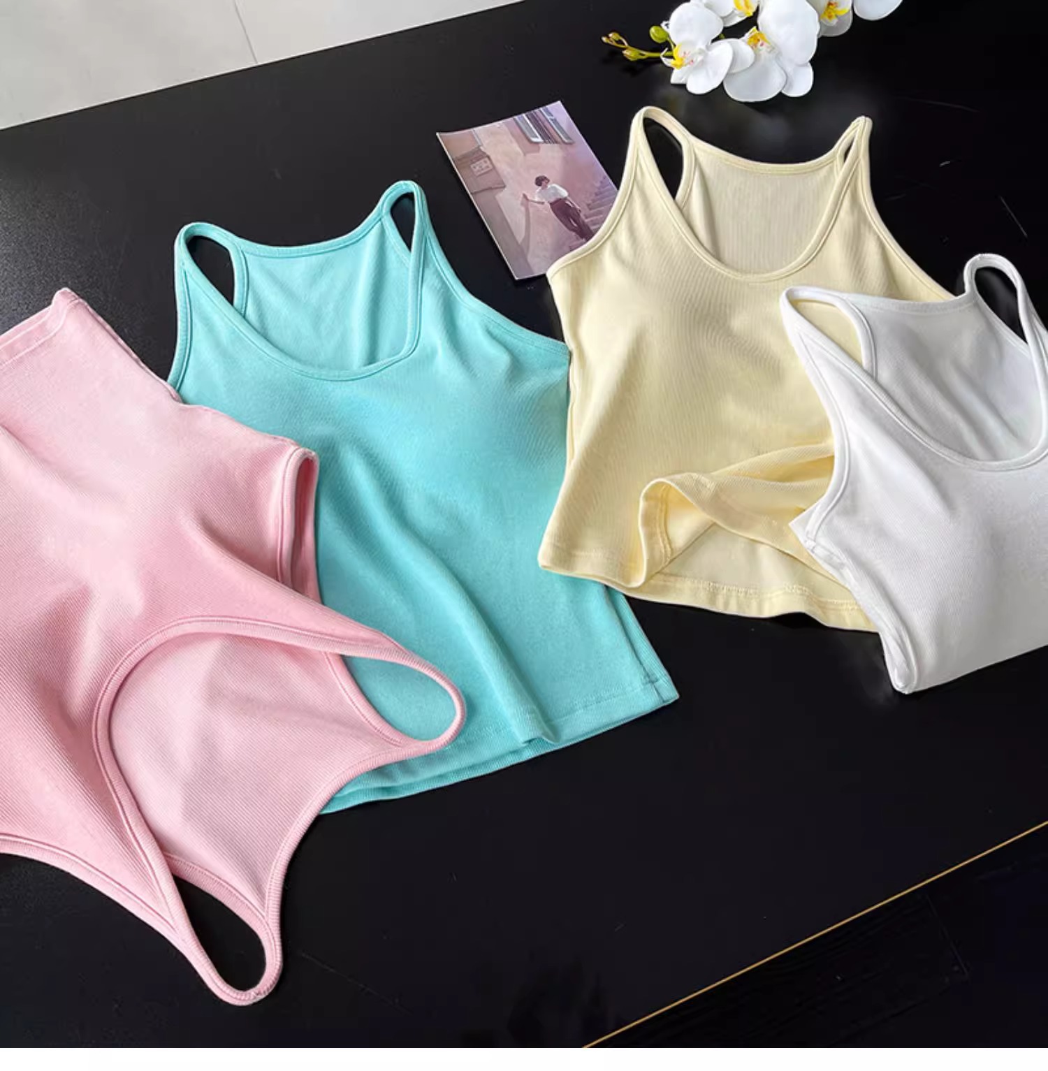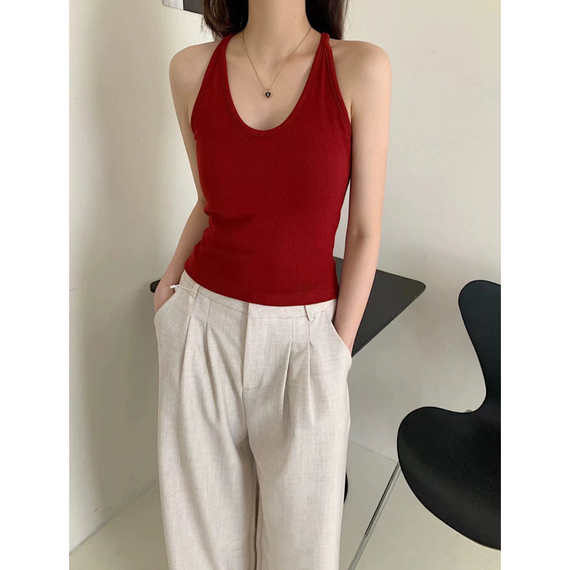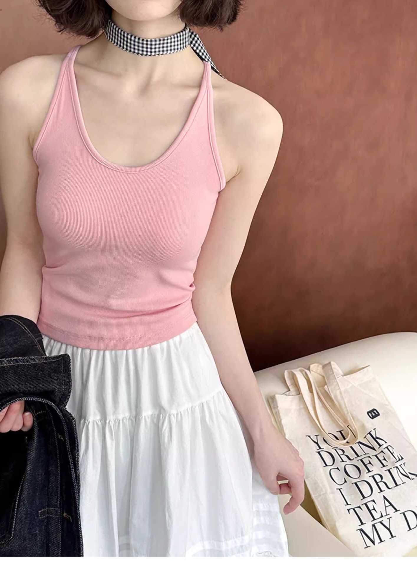 여성용 신형 프렌치 홀터넥 캐미솔, 가슴 패드 일체형 캔디 컬러 이너웨어, 패셔너블하고 스타일리시한 여성용 탑스토어 가기